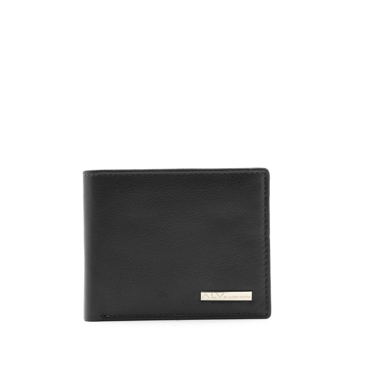 Portafoglio uomo in pelle morbida, con logo metallico ALV applicato sul fronte.