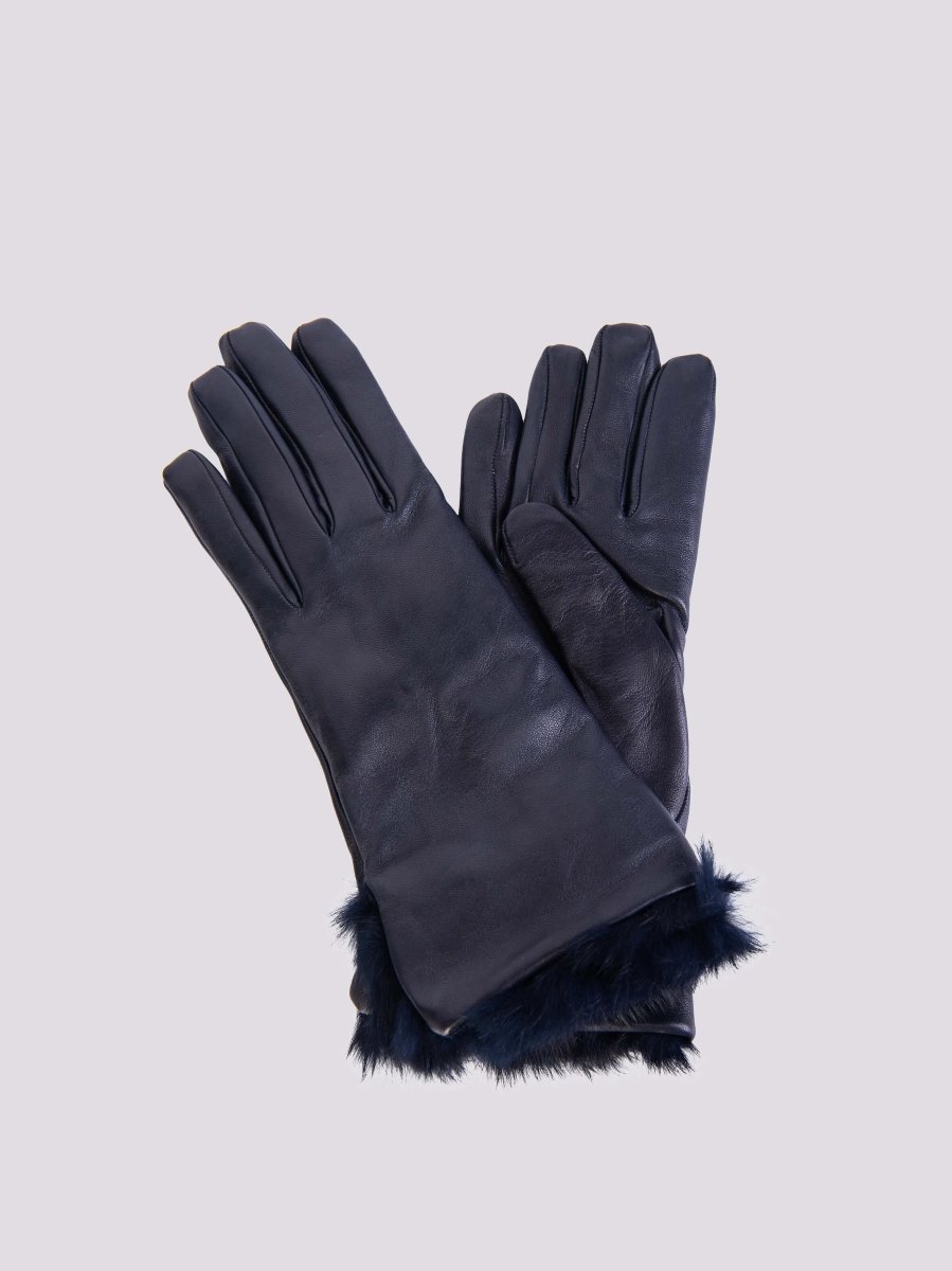 GUANTI IN NAPPA BLU CON POLSINO IN LAPIN