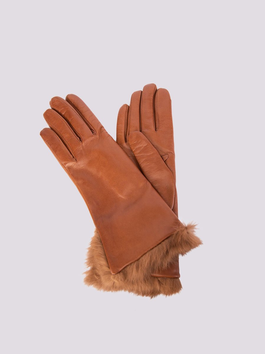 GUANTI IN NAPPA COGNAC CON POLSINO LAPIN
