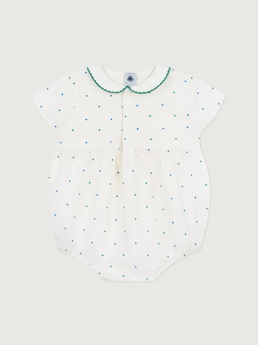 Pagliaccetto a maniche corte neonato in cotone con stampa a pois