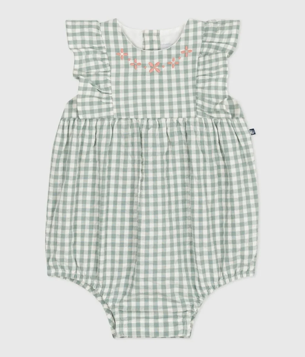 Pagliaccetto bebè senza maniche con stampa a quadretti e scollo ricamato
