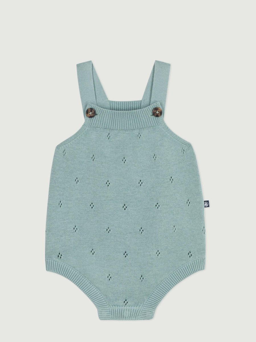 Pagliaccetto neonato in maglia con spalline