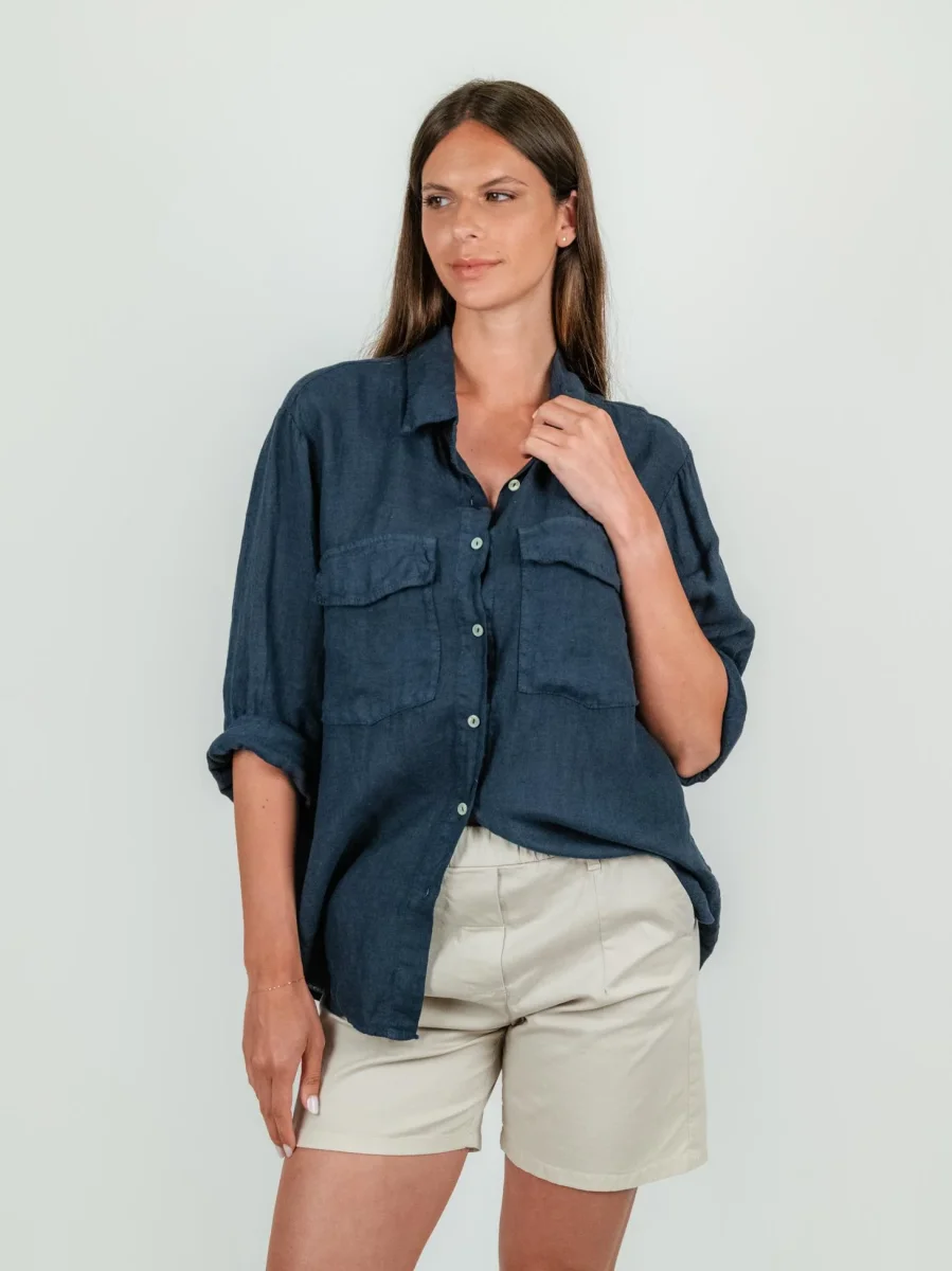 CAMICIA OVERSIZE IN LINO BLU