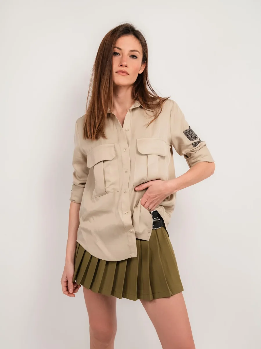 CAMICIA OVER COLOR SABBIA CON TASCONI