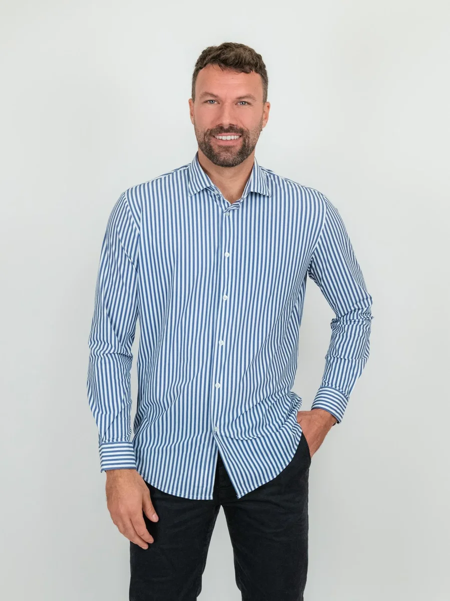 CAMICIA NO STIRO A RIGHE BIANCHE E AZZURRE