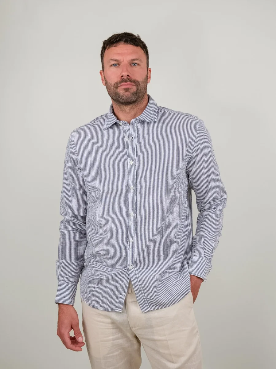 CAMICIA SEERSUCKER A RIGHE BLU