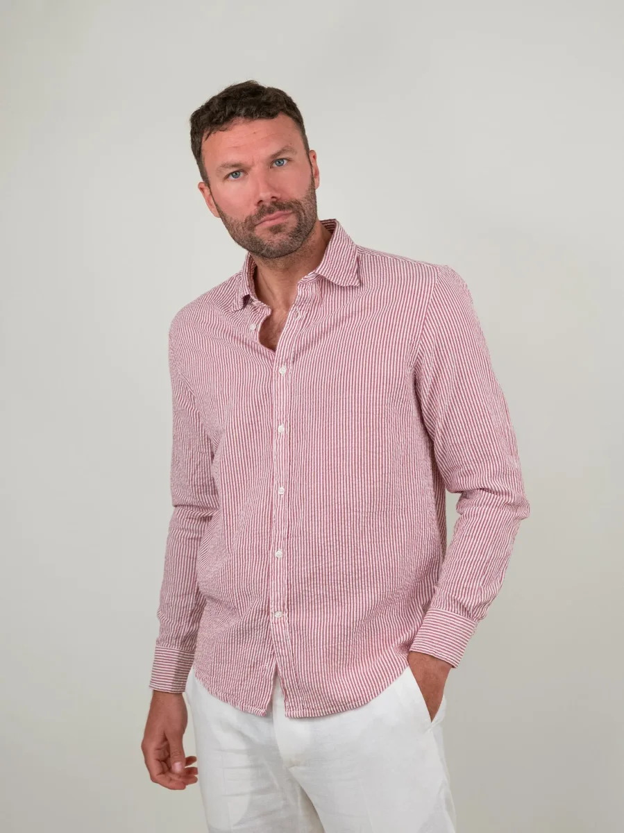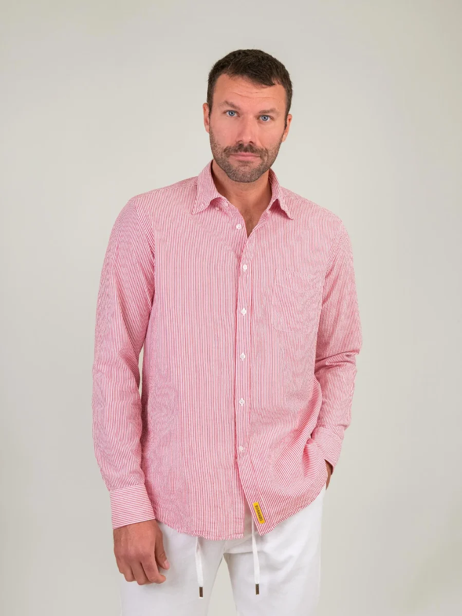 CAMICIA SEERSUCKER CON RIGHE BIANCHE E ROSSE