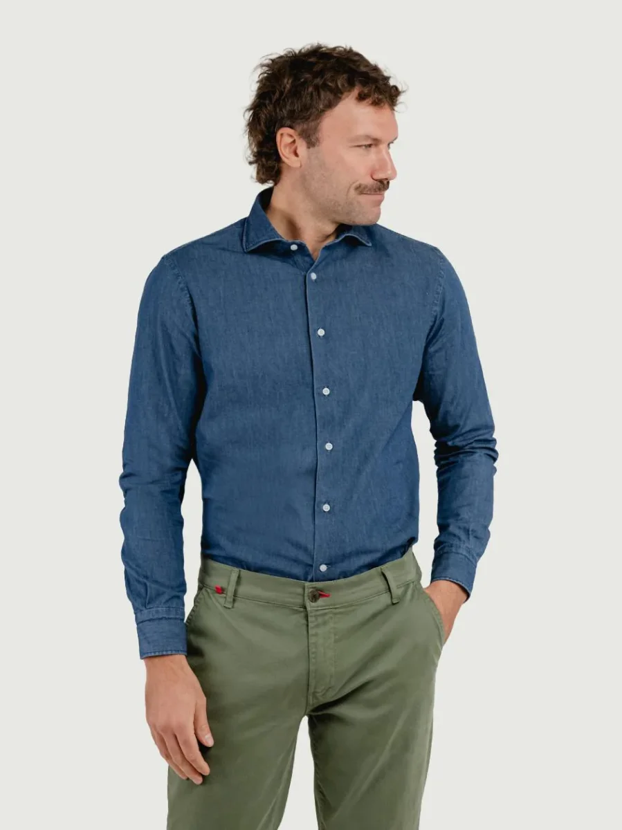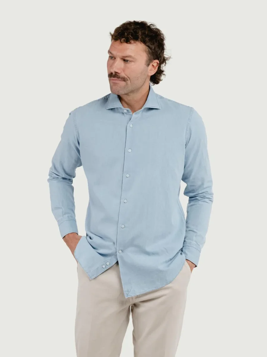 CAMICIA SLIM IN DENIM CHIARO