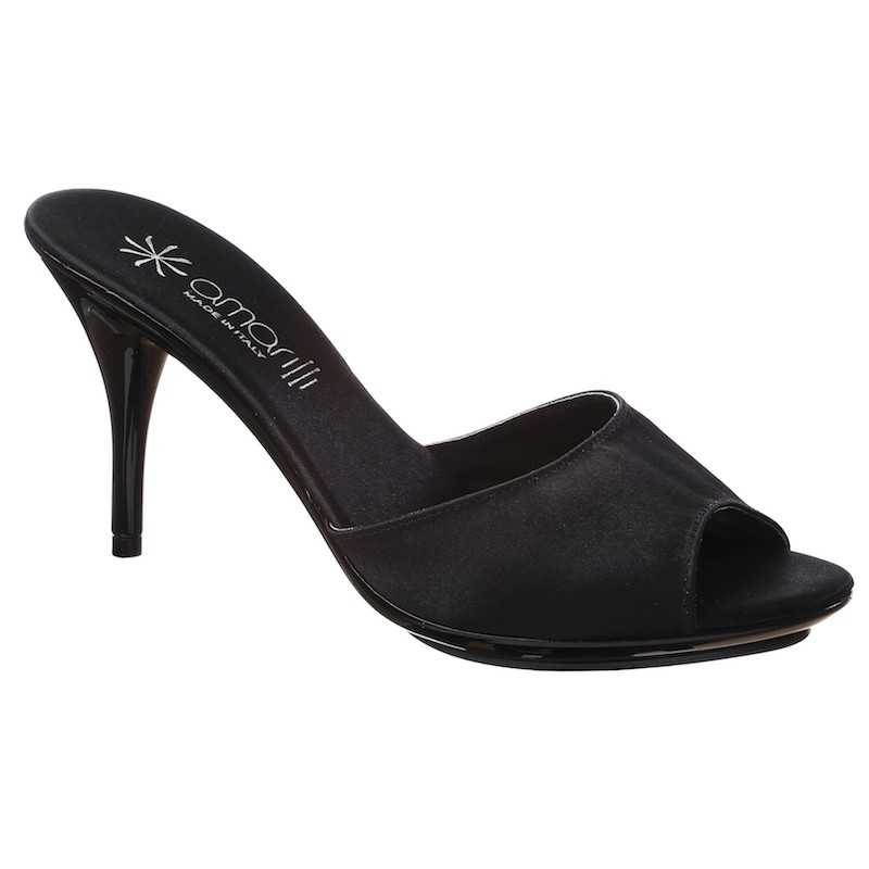 Ciabattine da donna con tacco alto 9 cm, aperte, in raso nero fatte in Italia!