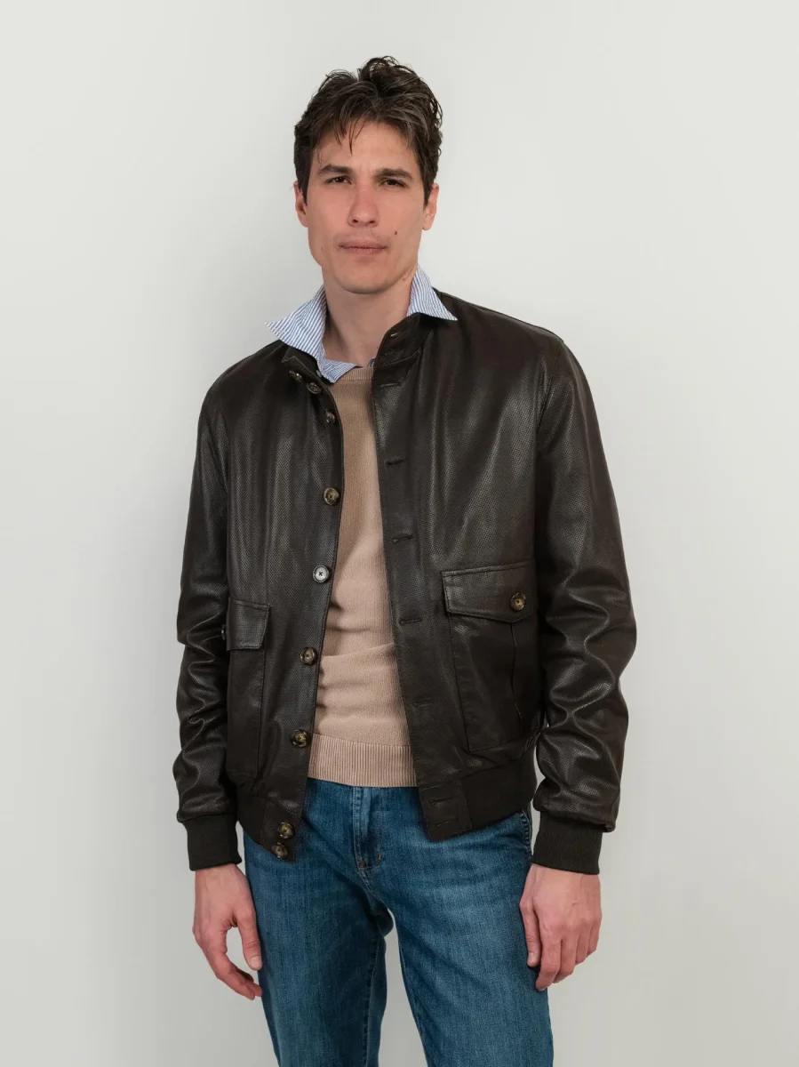 GIUBBOTTO IN PELLE TRAFORATA TESTA MORO