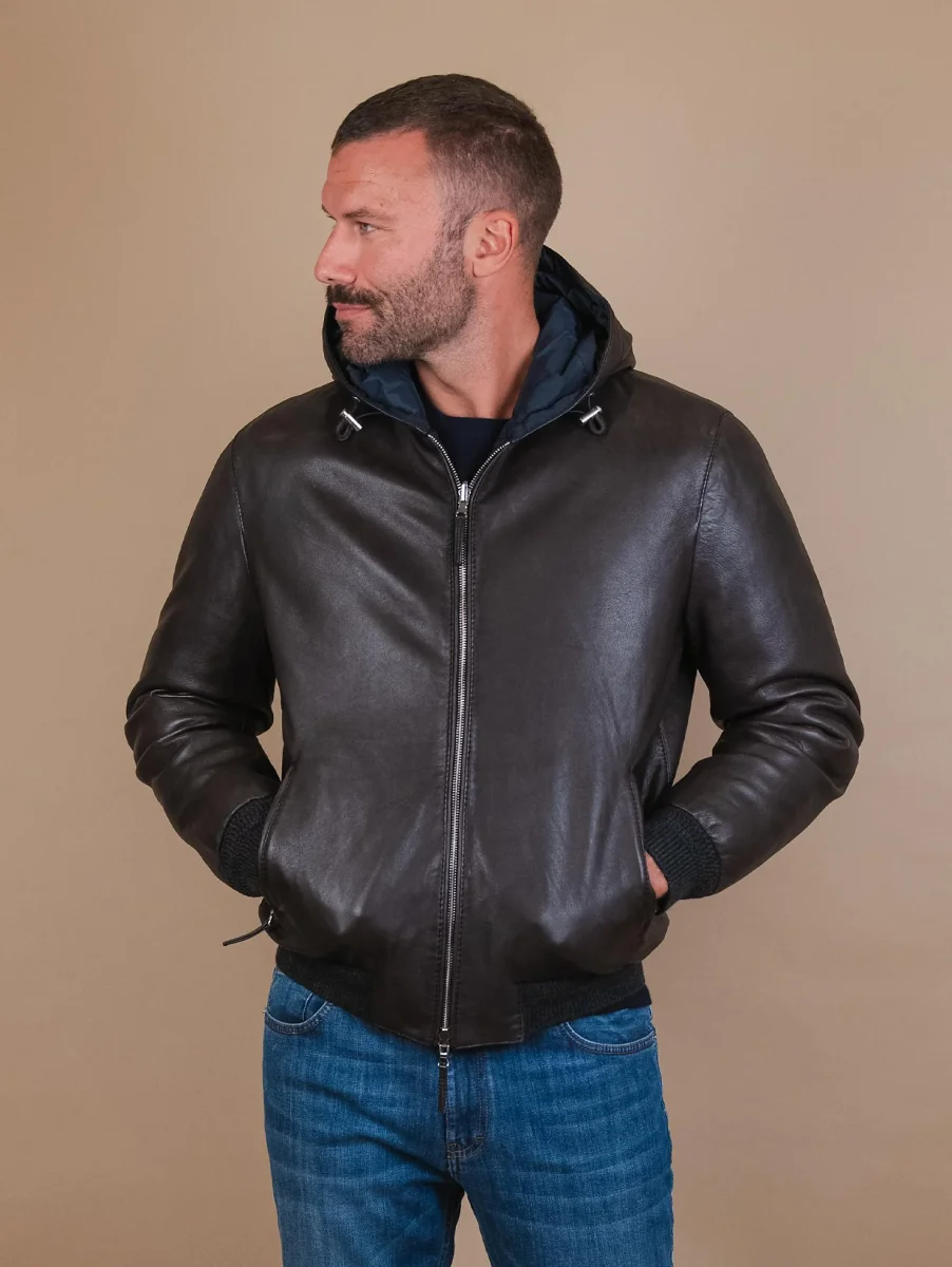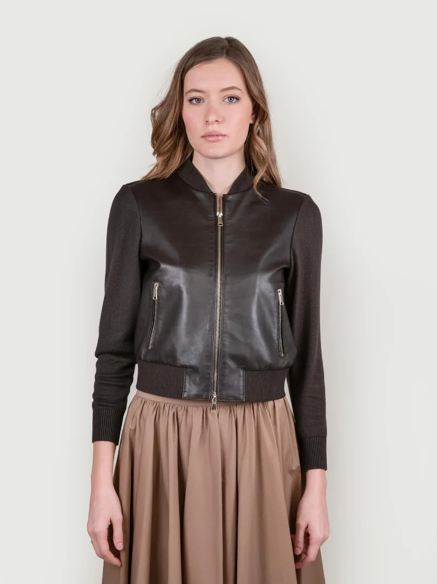 GIUBBOTTO IN PELLE E MAGLIA MARRONE