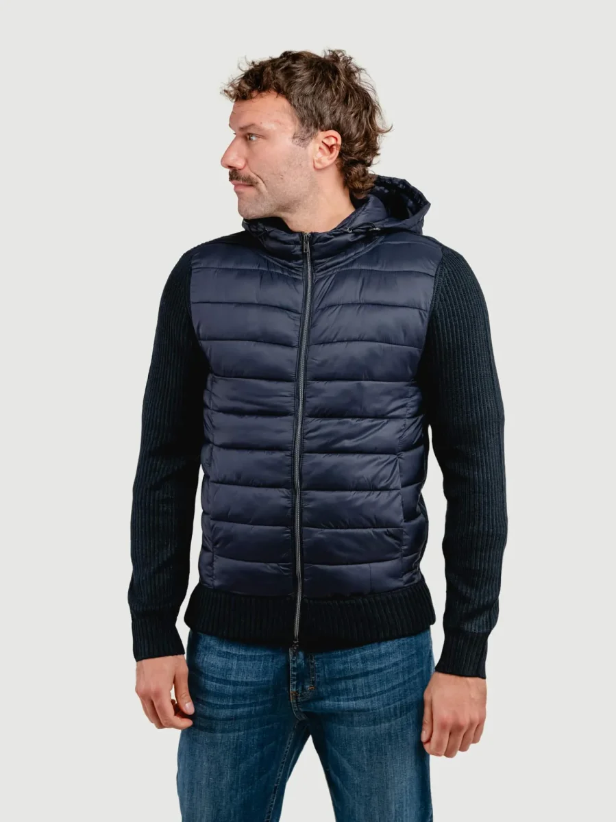 GIUBBOTTO TRAPUNTATO CON INSERTI IN MAGLIA BLU NAVY