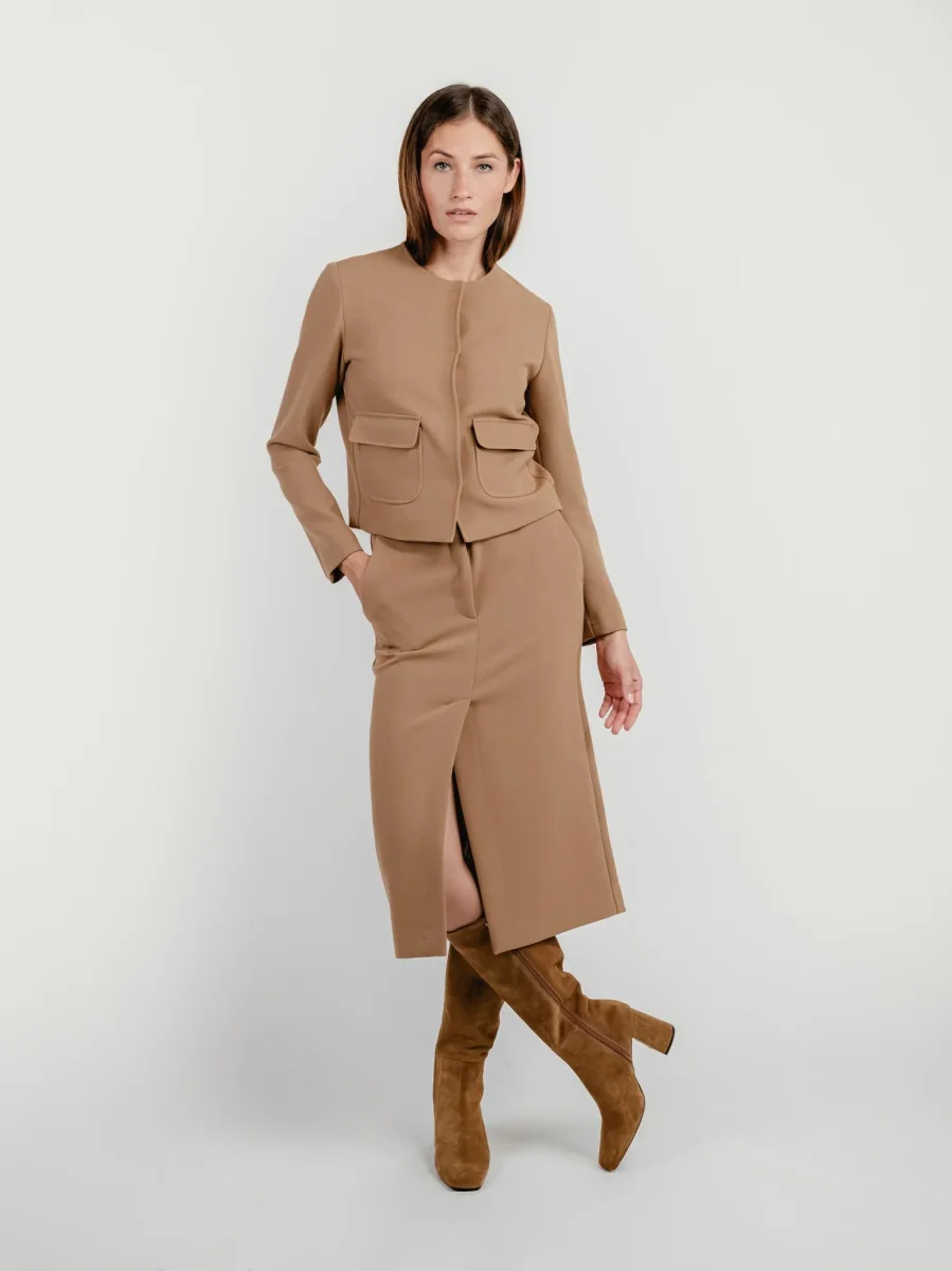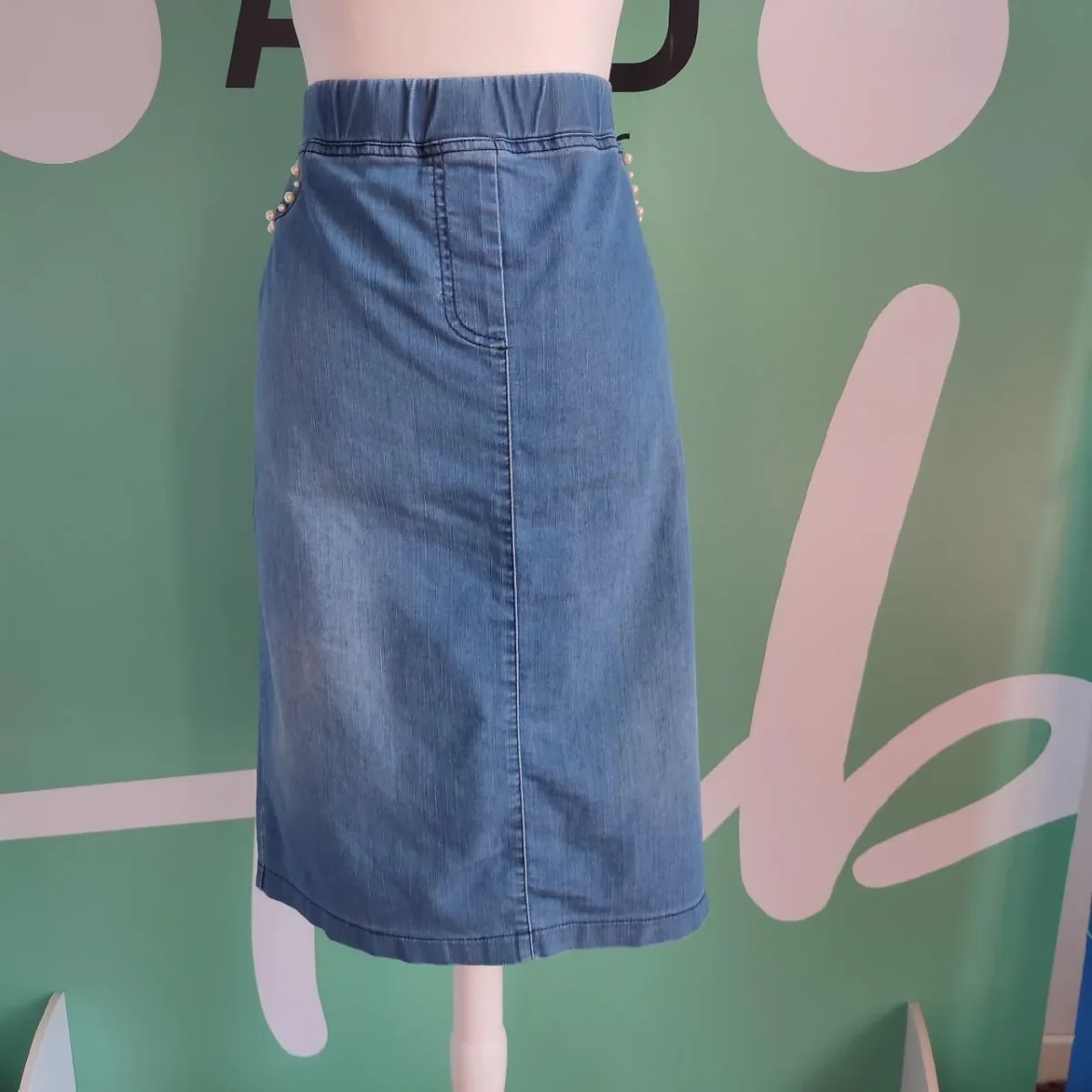 GONNA DI JEANS MIDI CON MAXI SPACCO FRONTALE