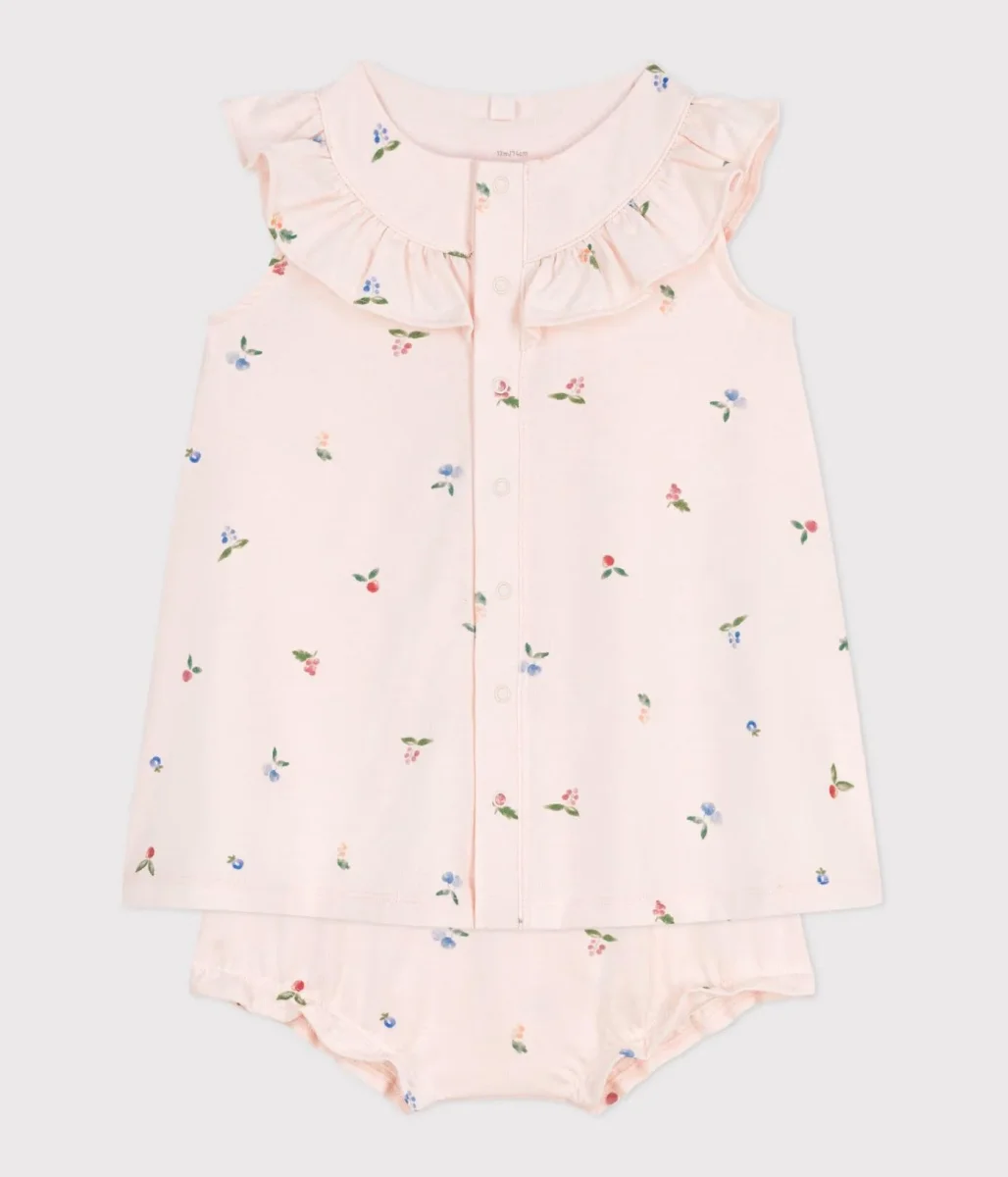 Abito neonato a maniche corte in cotone e bloomer con stampa a frutti