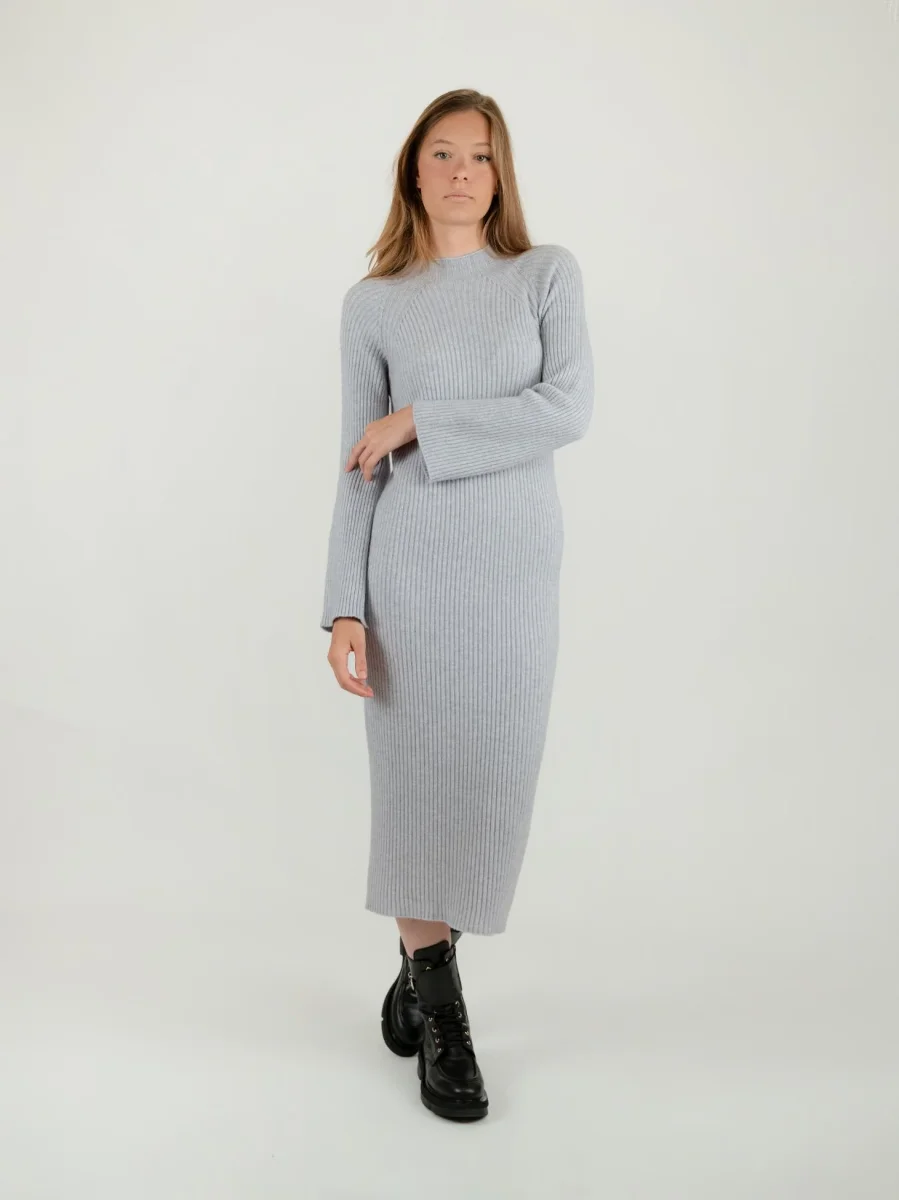 ABITO MIDI IN MAGLIA GRIGIO PERLA