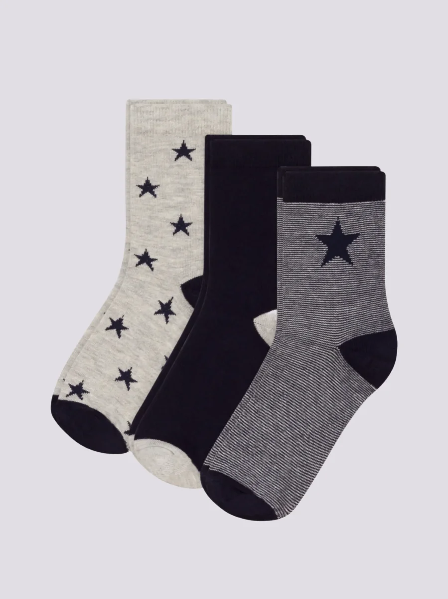 CONFEZIONE DA 3 PAIA DI CALZINI BAMBINO A STELLE IN JERSEY DI COTONE