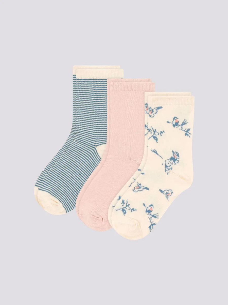 CONFEZIONE DA 3 PAIA DI CALZINI BAMBINA CON MOTIVO UCCELLI