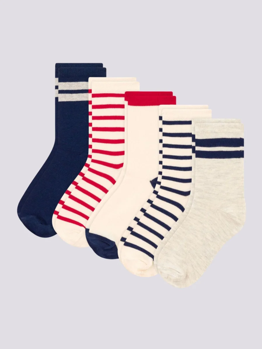CONFEZIONE DA 5 PAIA DI CALZINI BLU BIANCO ROSSO BAMBINO UNISEX