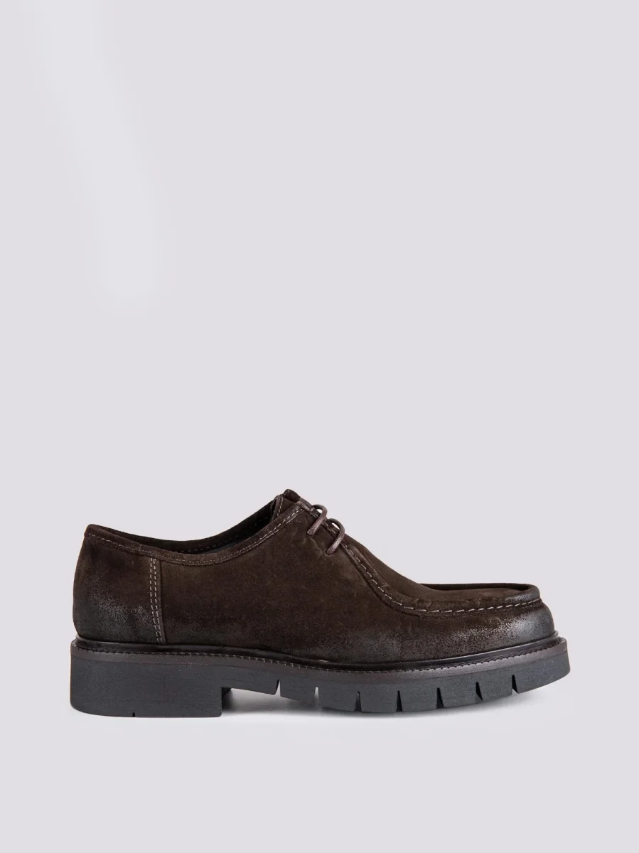 STRINGATA IN CAMOSCIO MARRONE CON CODA DI RONDINE