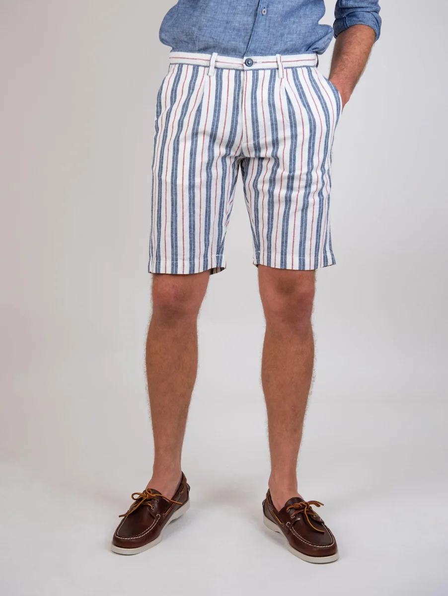 Bermuda a righe blu in misto lino e cotone