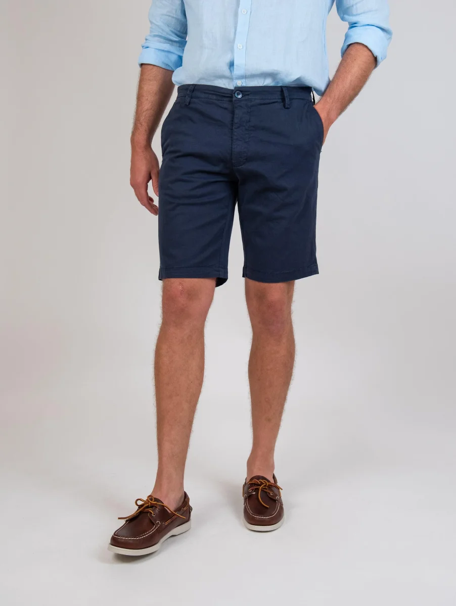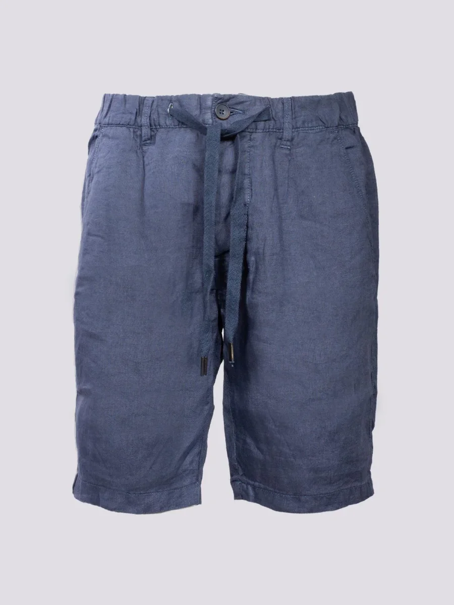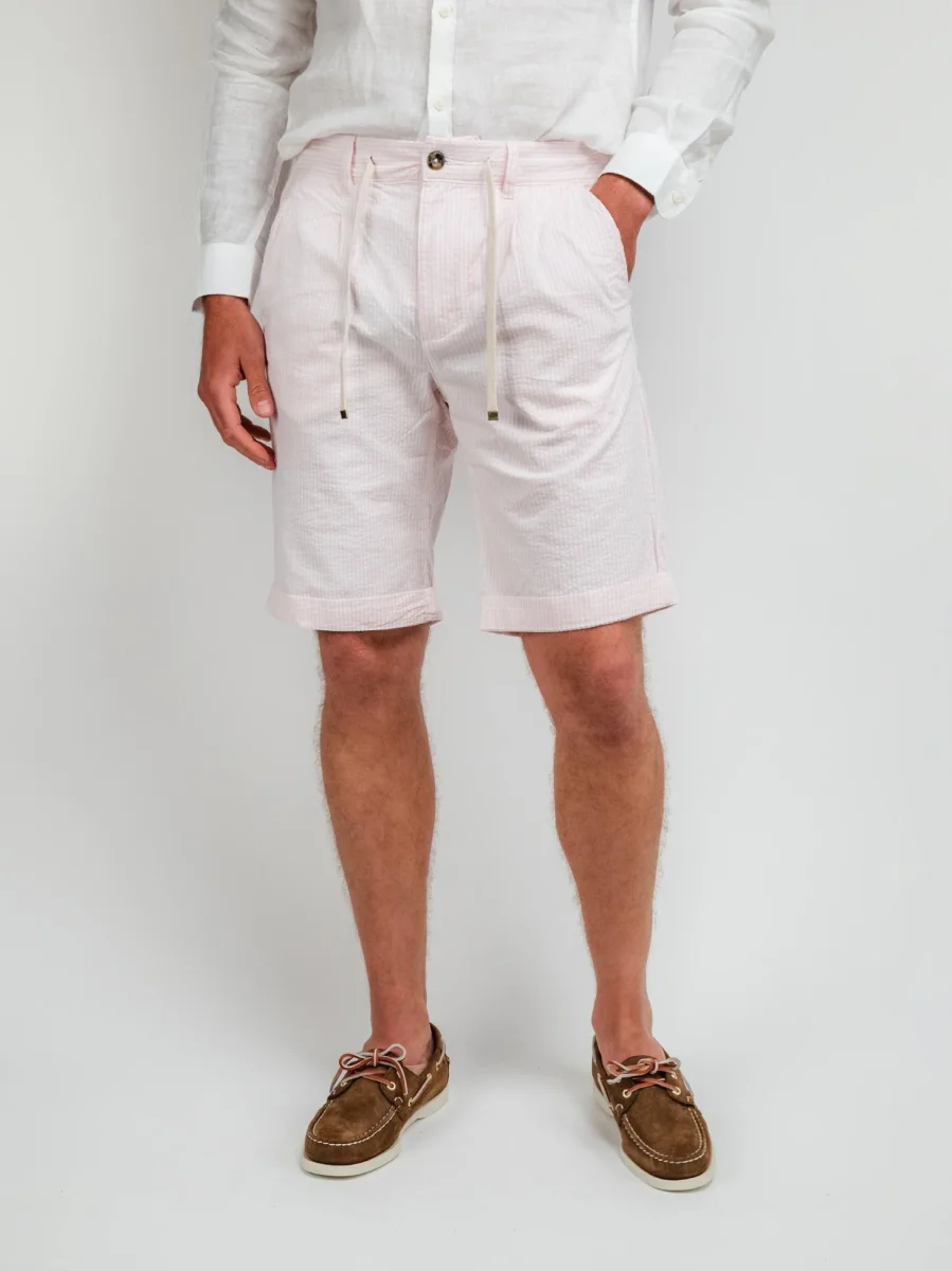 BERMUDA IN COTONE A RIGHE AZZURRE E BIANCHE CON COULISSE