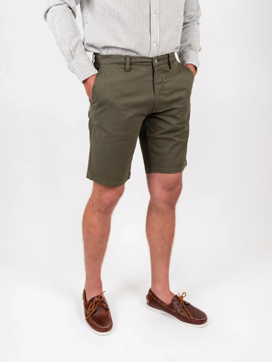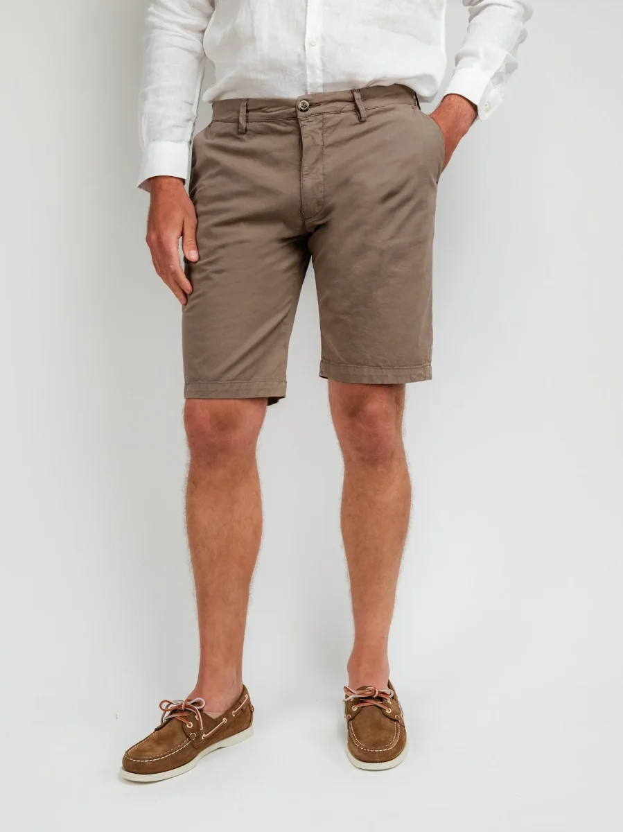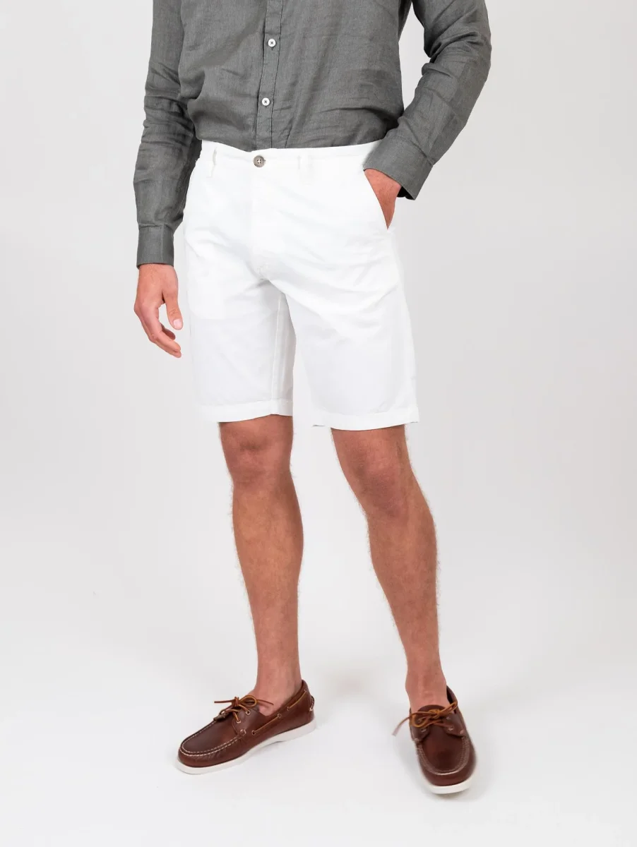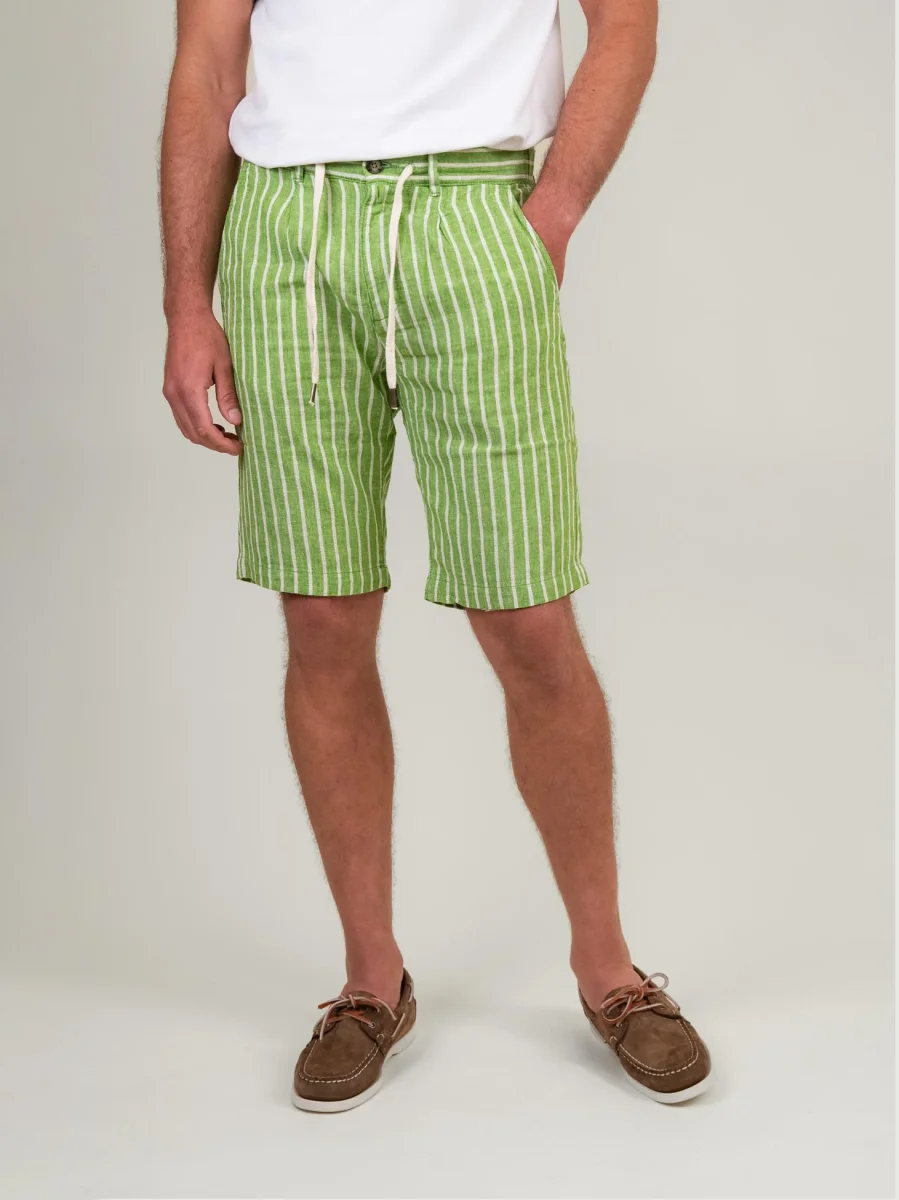 BERMUDA IN LINO E COTONE A RIGHE PANNA E VERDI