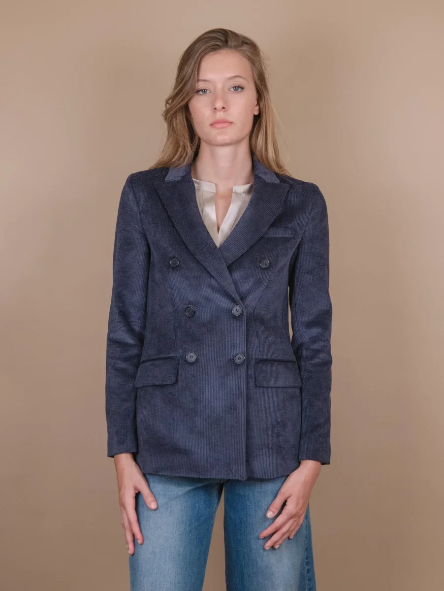 BLAZER DOPPIOPETTO IN VELLUTO A COSTINE BLU