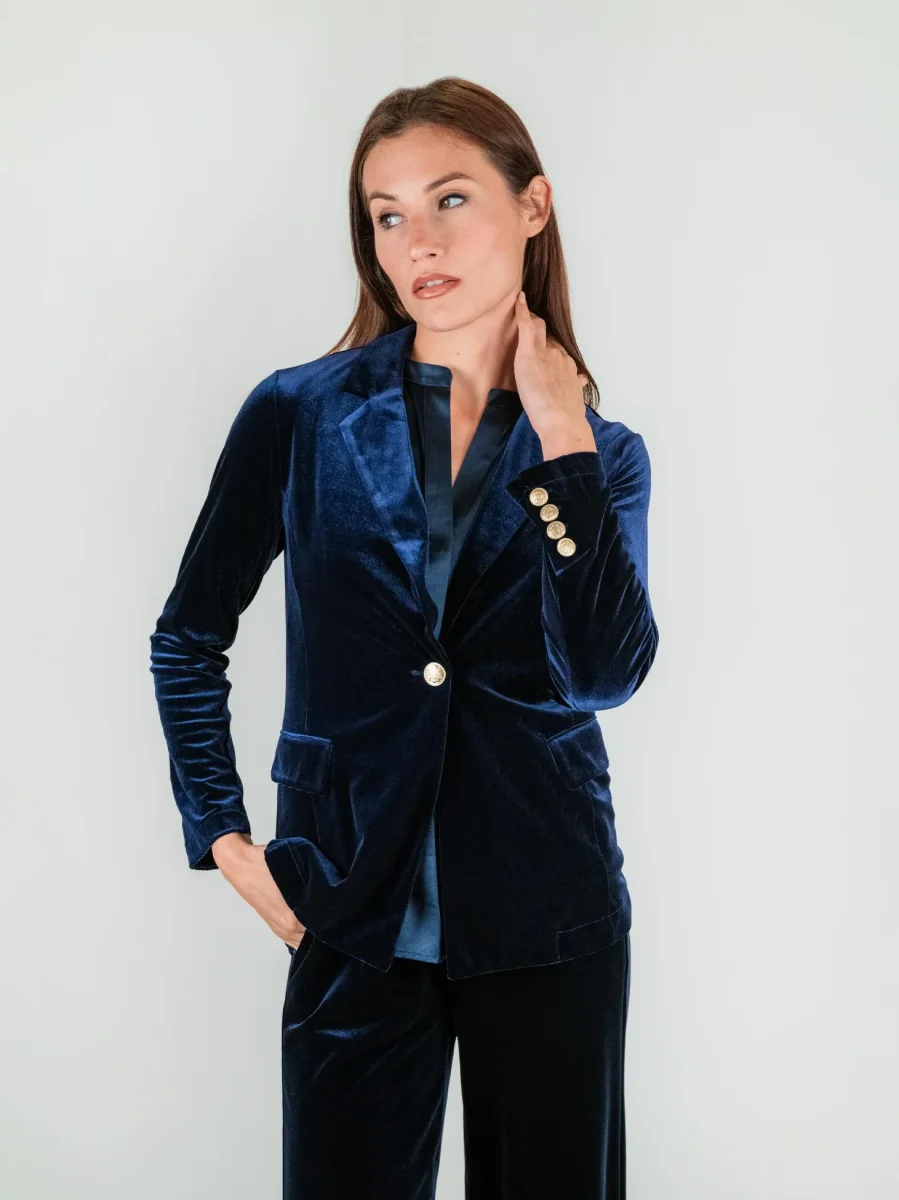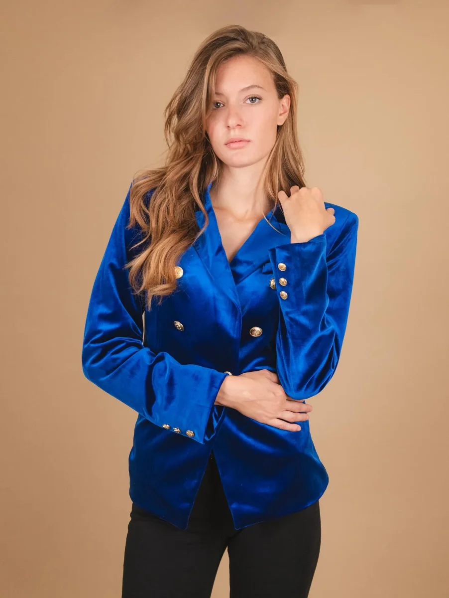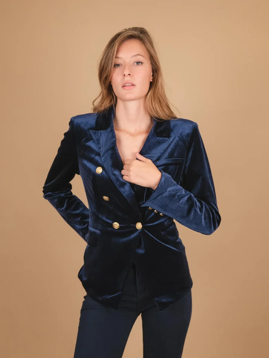 BLAZER DOPPIOPETTO IN VELLUTO BLU