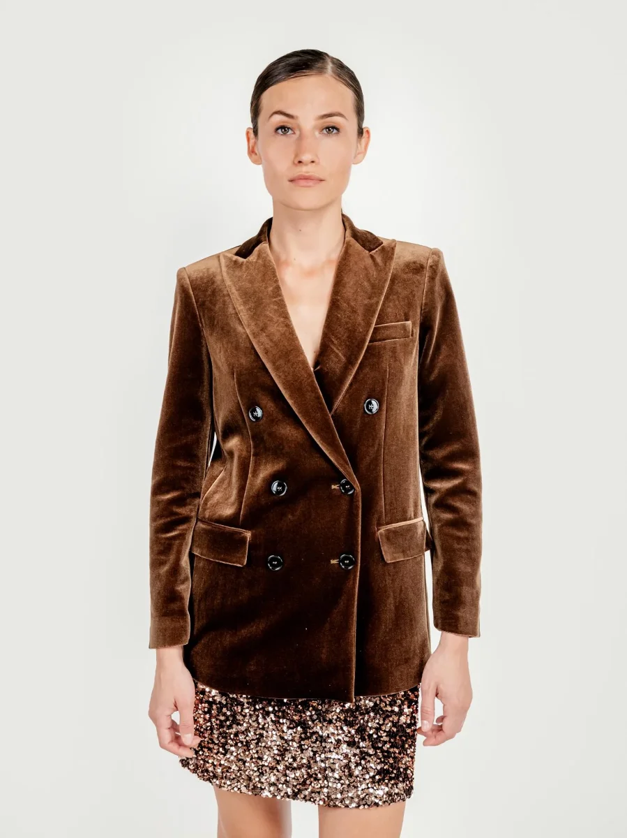 BLAZER DOPPIOPETTO IN VELLUTO CAFFÈ