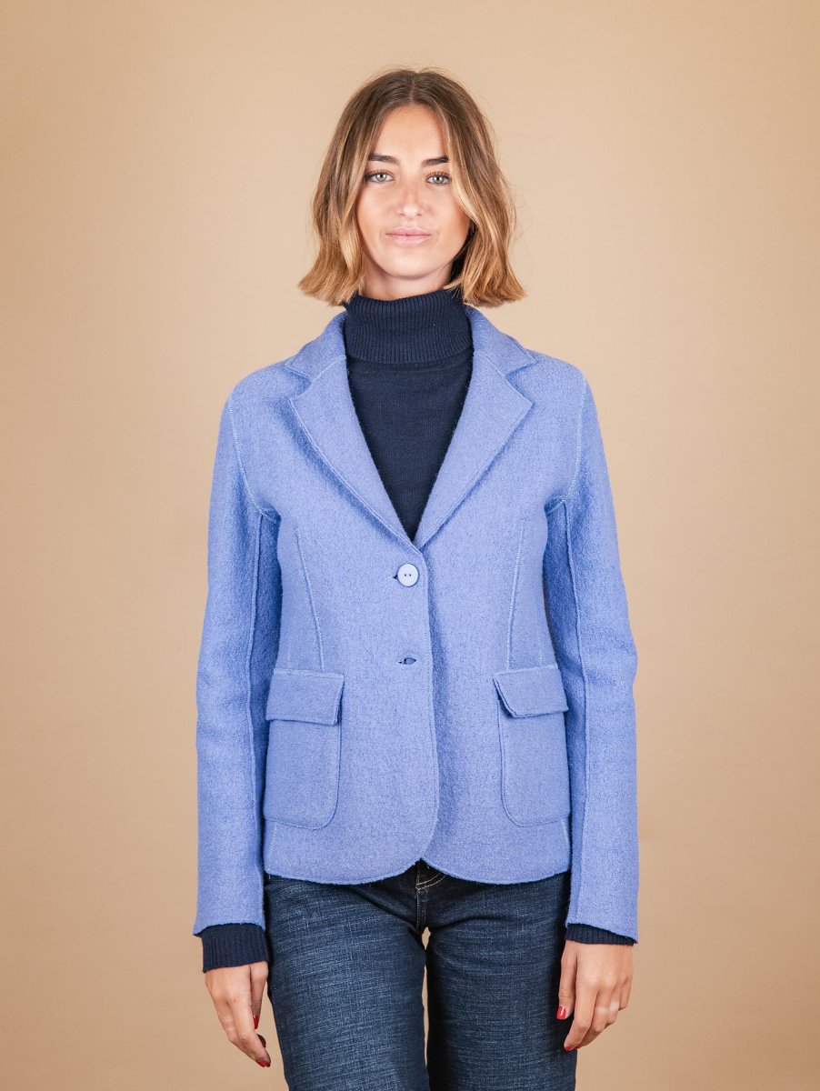 GIACCA SFODERATA IN LANA COTTA AZZURRA