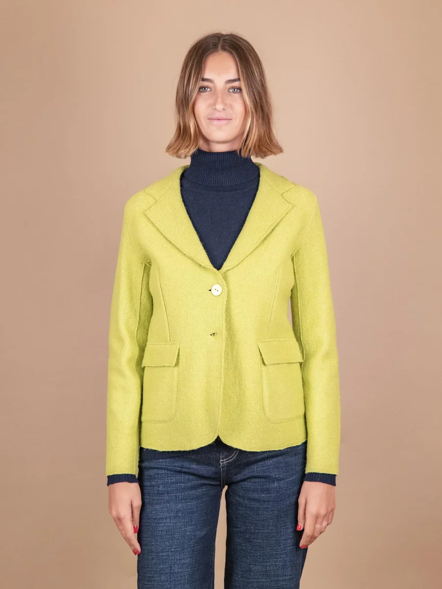 GIACCA SFODERATA IN LANA COTTA VERDE ACIDO