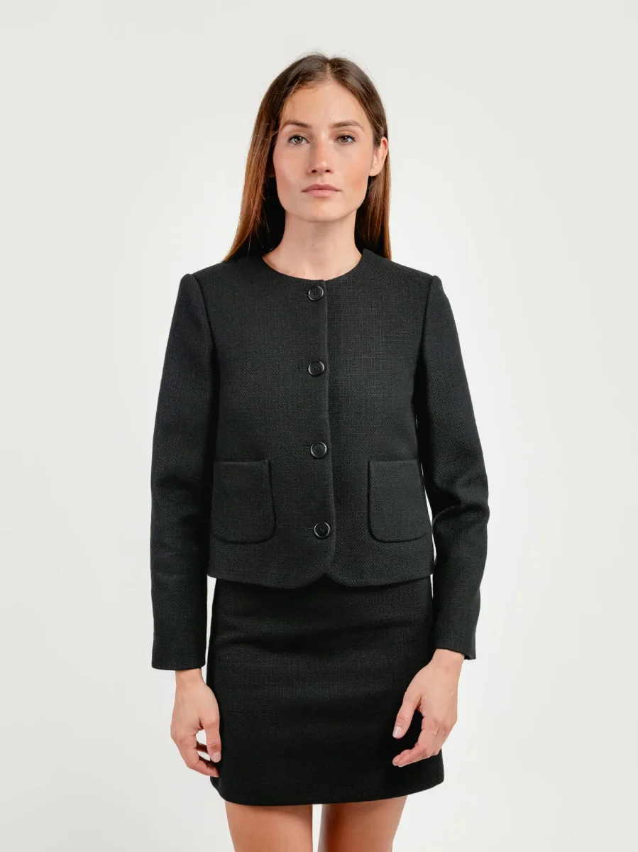 GIACCA MONOPETTO CON COLLO ROTONDO NERA