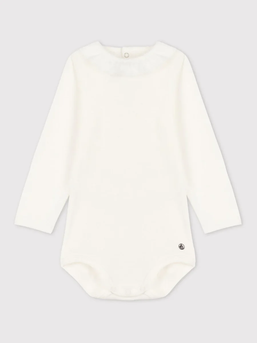 BODY IN COTONE BIANCO A MANICA LUNGA BEBÈ CON COLLETTO