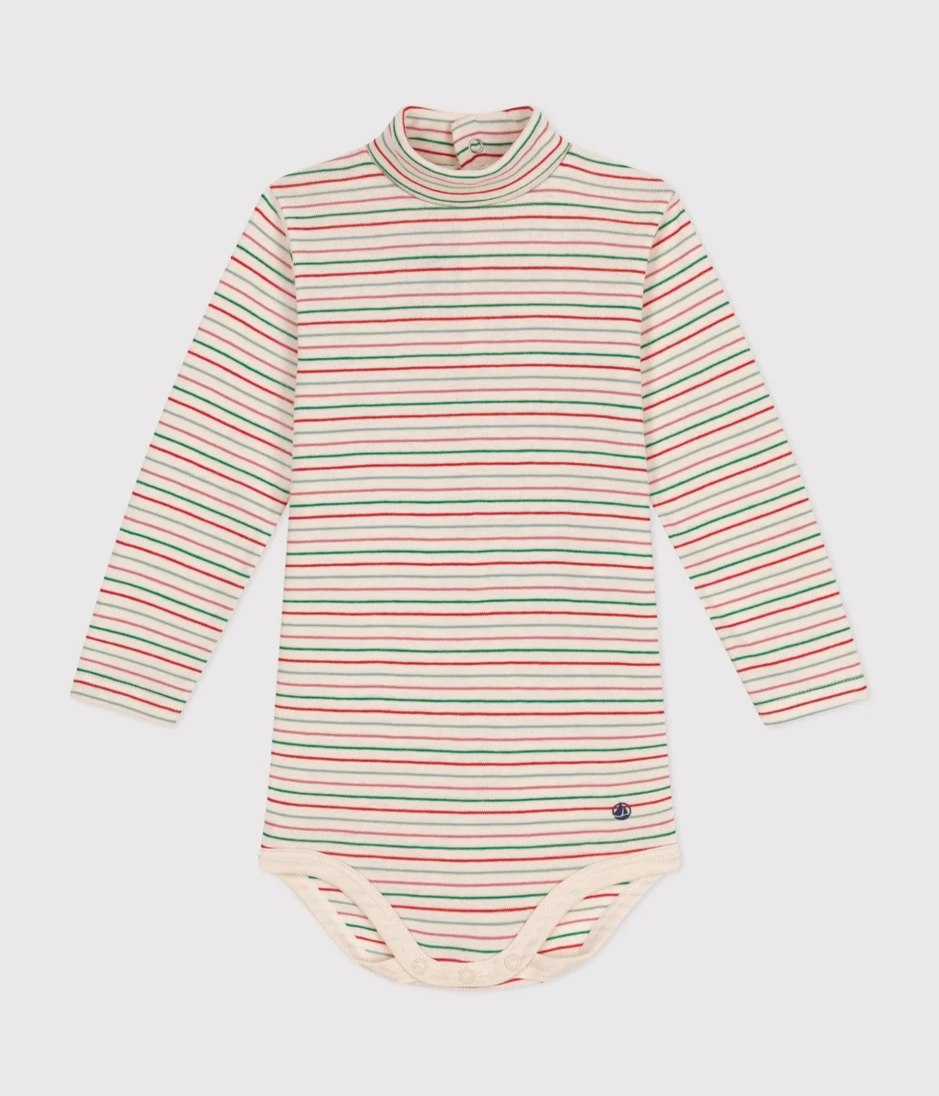 Body a righe a maniche lunghe in cotone con collo a lupetto