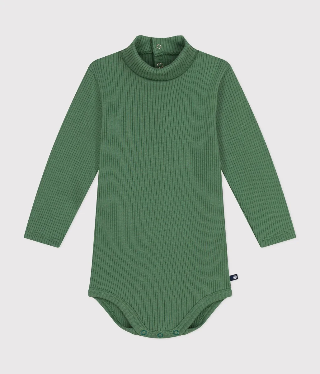 Body a tinta unita verde a maniche lunghe e collo a lupetto