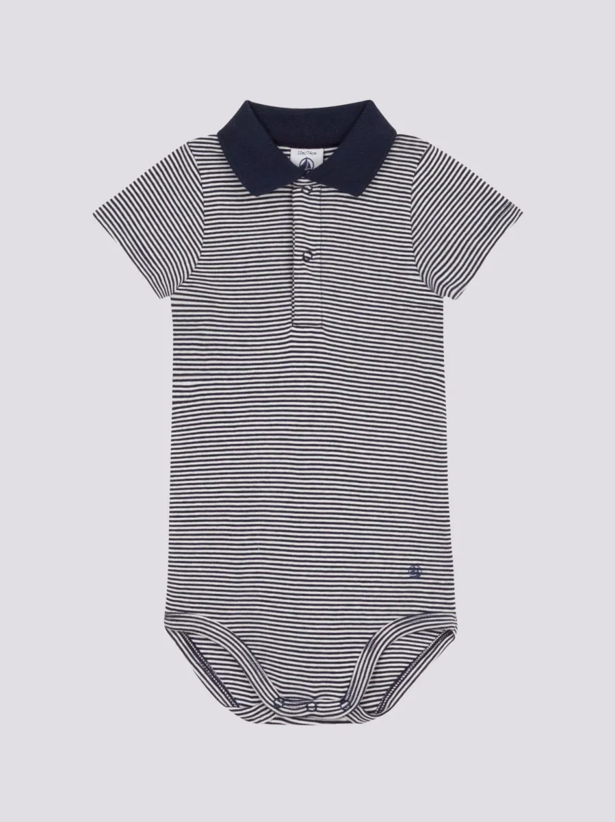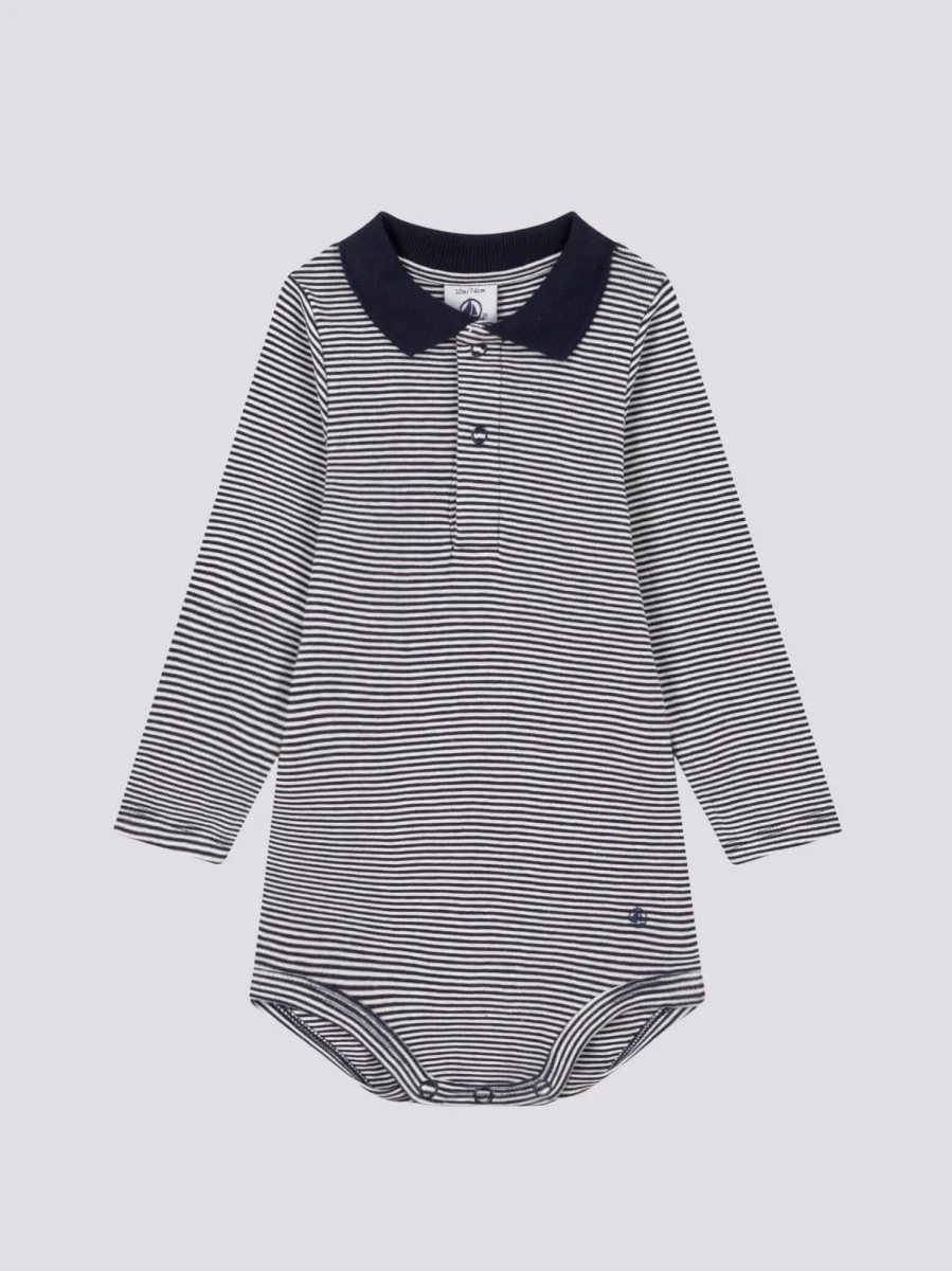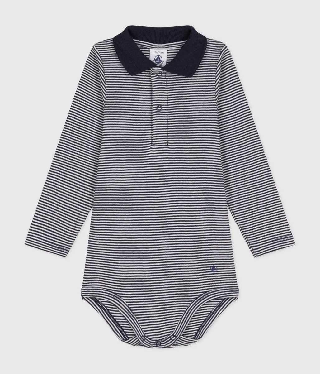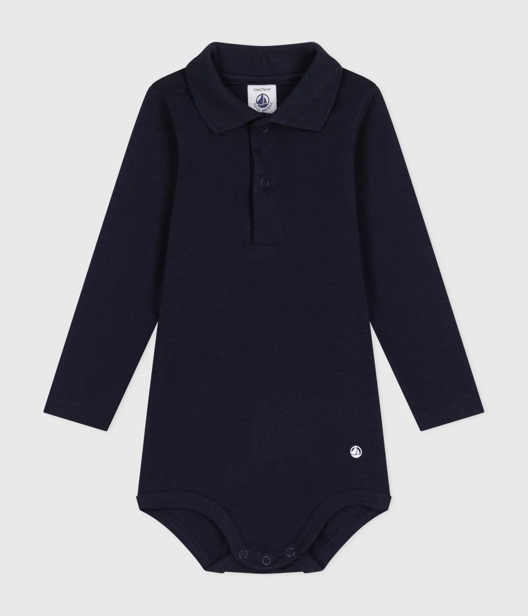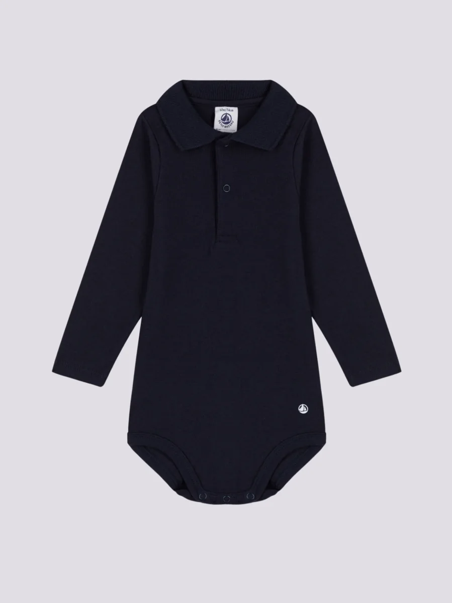 BODY A MANICA LUNGA BEBÈ CON COLLETTO POLO IN COTONE
