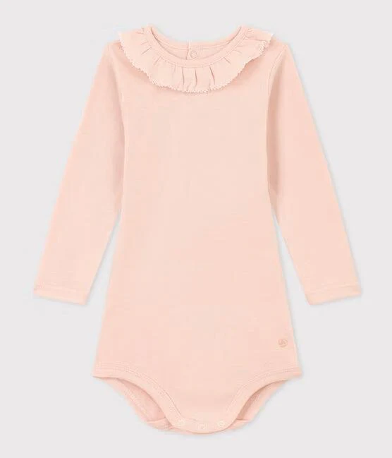 Body rosa in cotone a manica lunga con collaretto