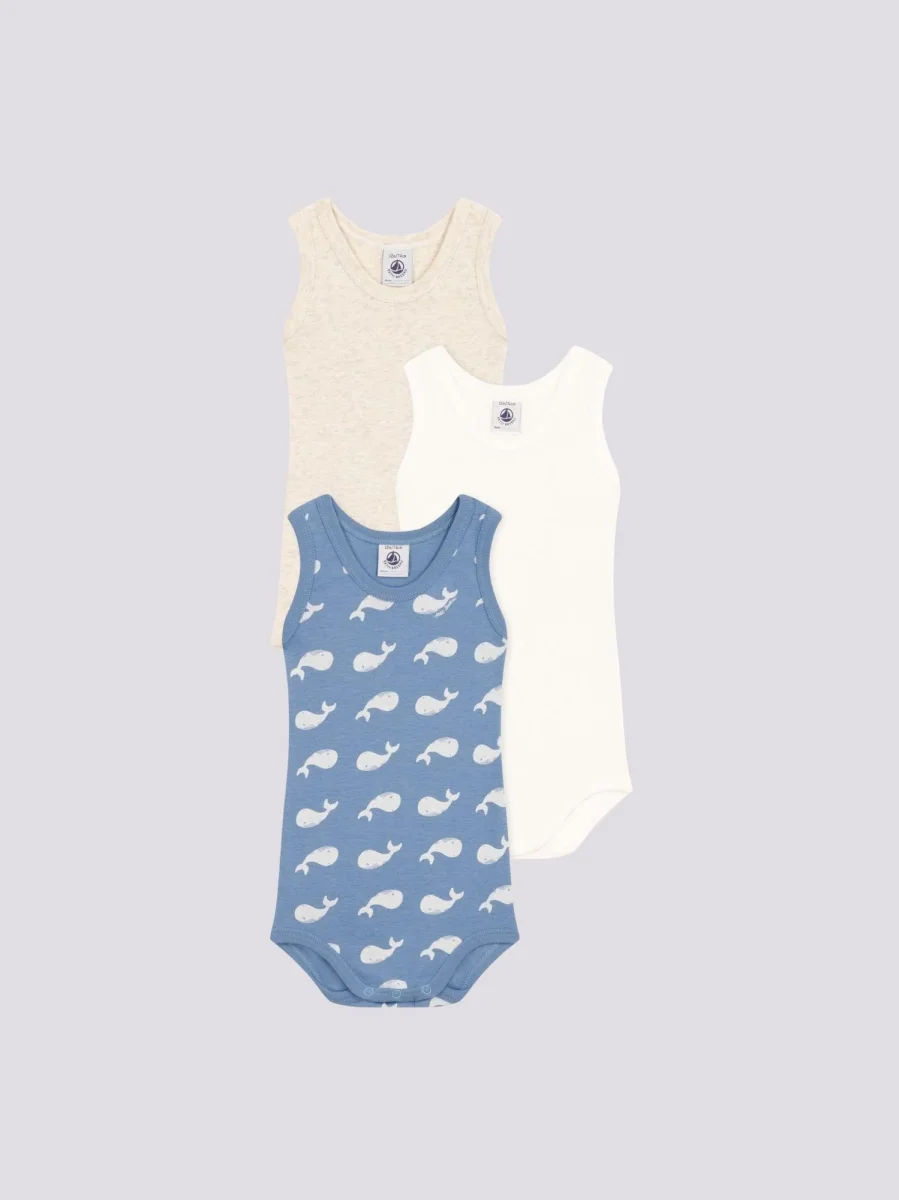 CONFEZIONE DA 3 BODY BEBÈ SENZA MANICHE IN COTONE CON BALENA