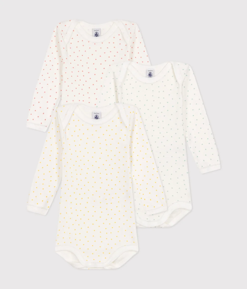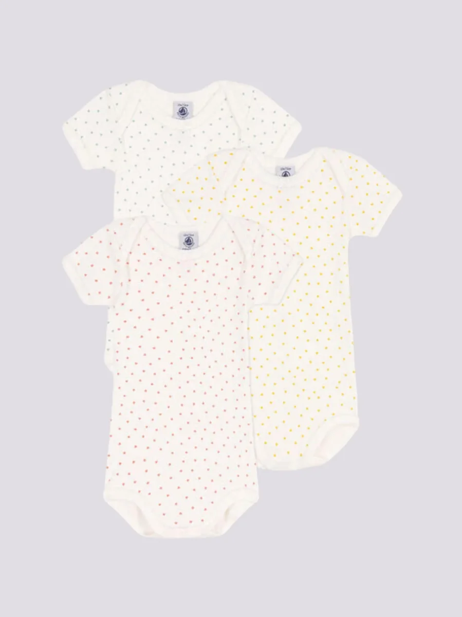 CONFEZIONE DA 3 BODY BEBÈ IN COTONE CON MINI CUORI