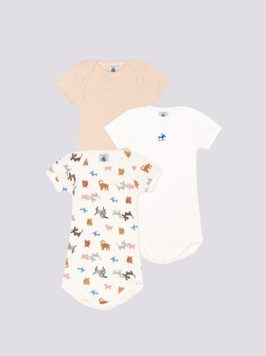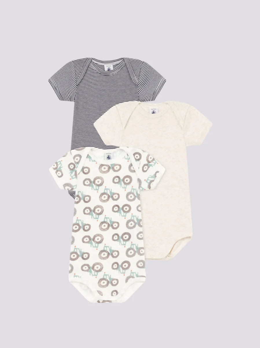 CONFEZIONE DA 3 BODY BEBÈ MANICA CORTA IN COTONE CON MOTIVO TRATTORI