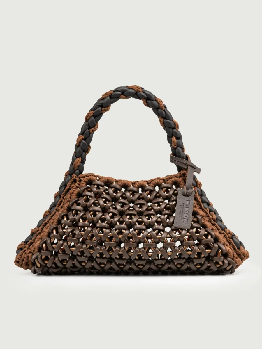 BORSA BIG CRUSH IN RESINA E PELLE TESTA MORO