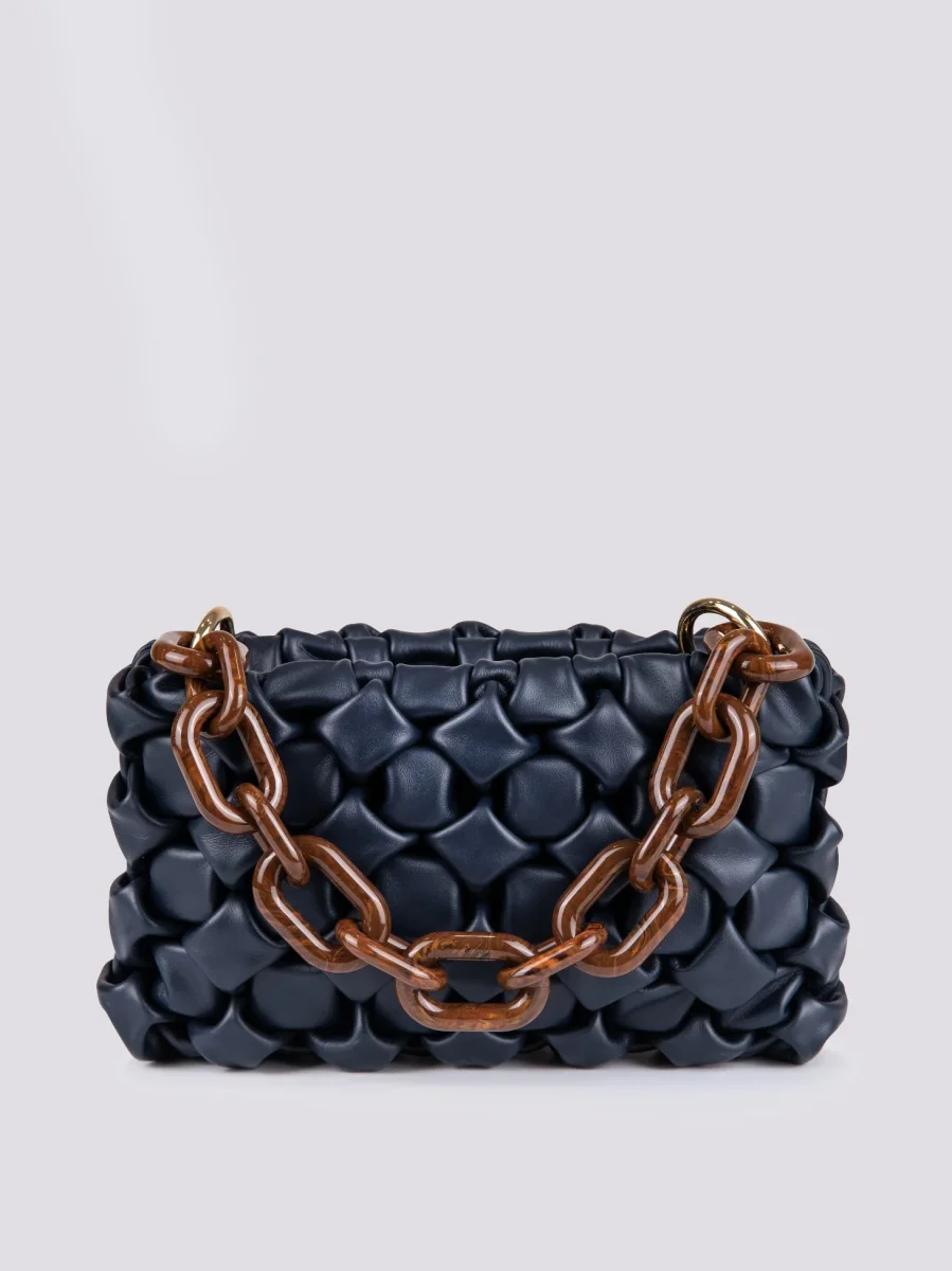 BORSA IN PELLE INTRECCIATA CURLY BLU
