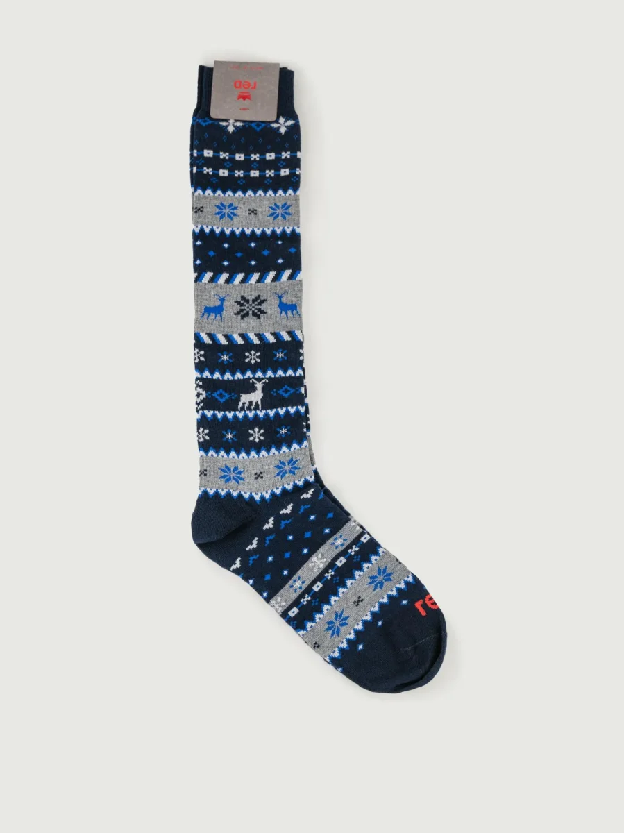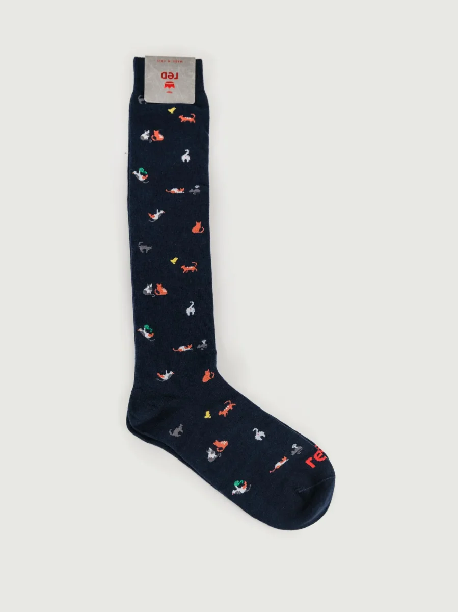 CALZA COTONE CASHMERE BLU MOTIVO PECORELLE