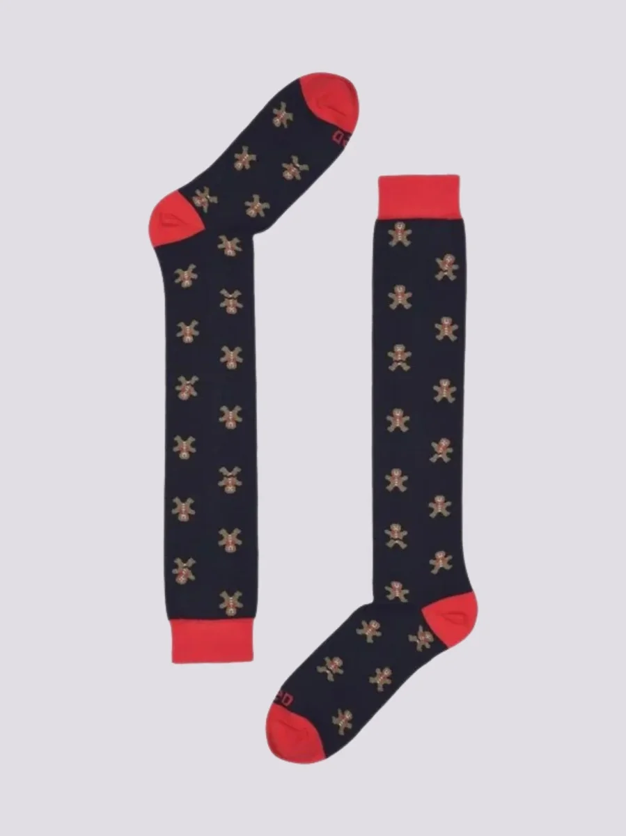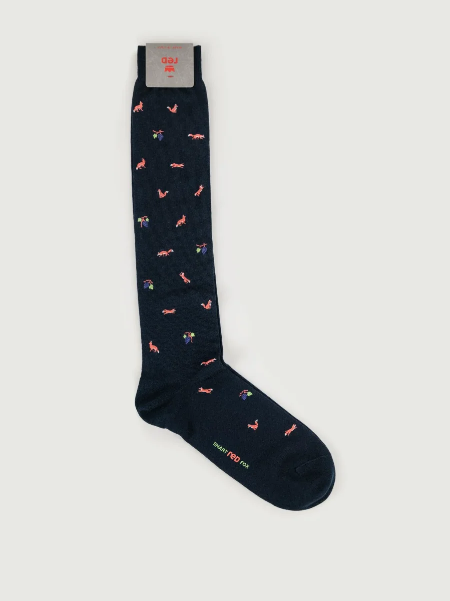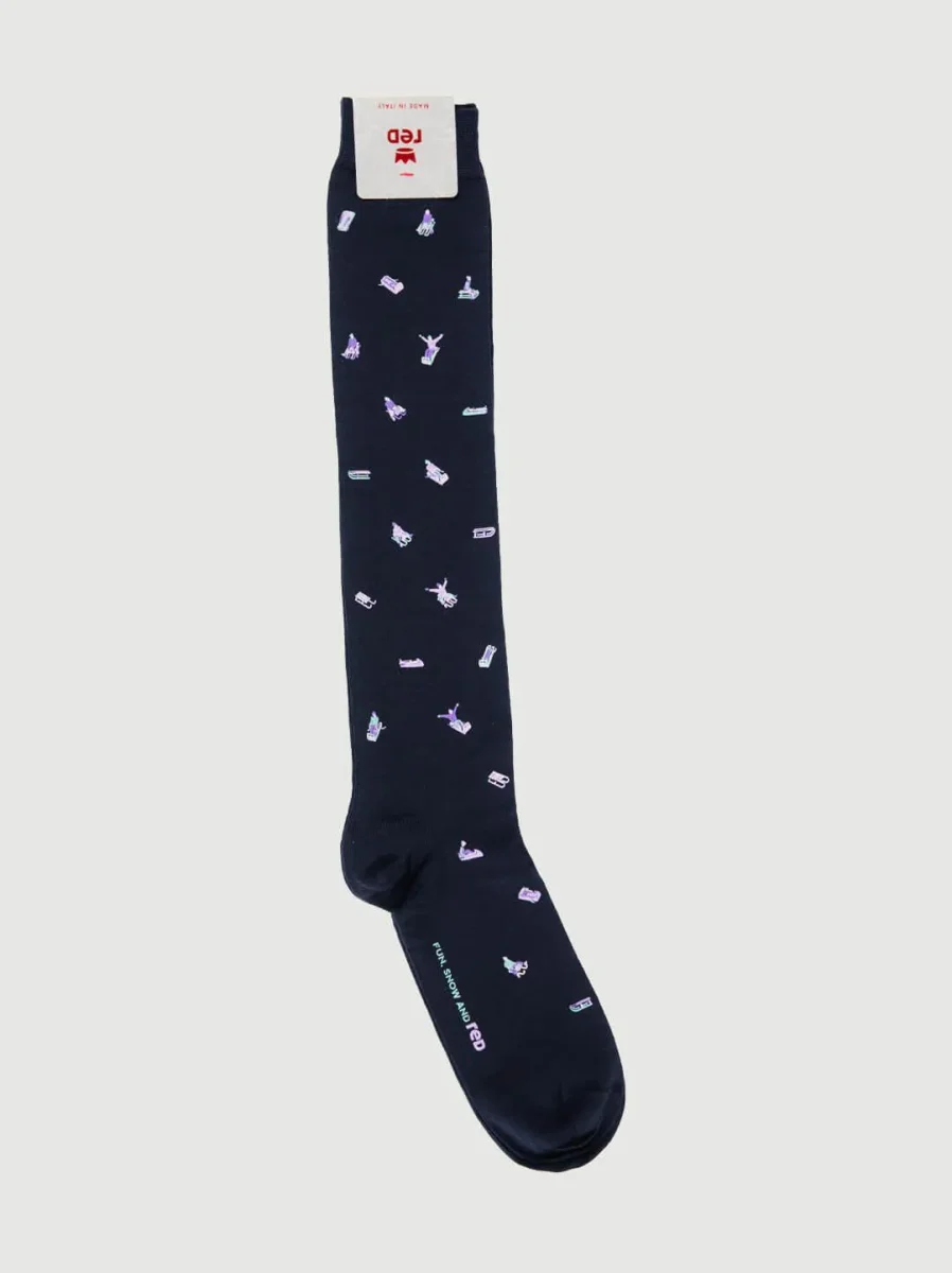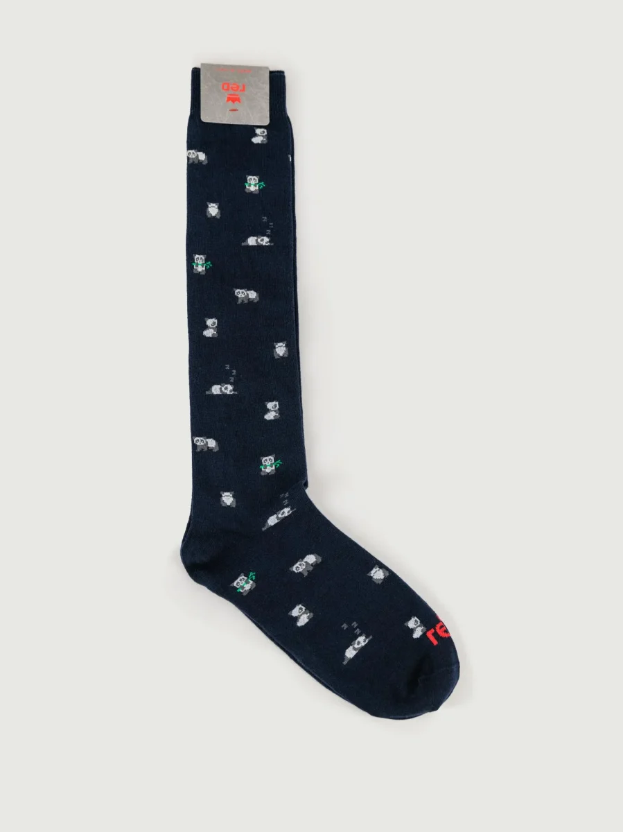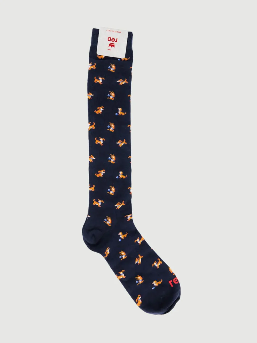 CALZA LUNGA CALDO COTONE BLU MOTIVO BASSOTTI