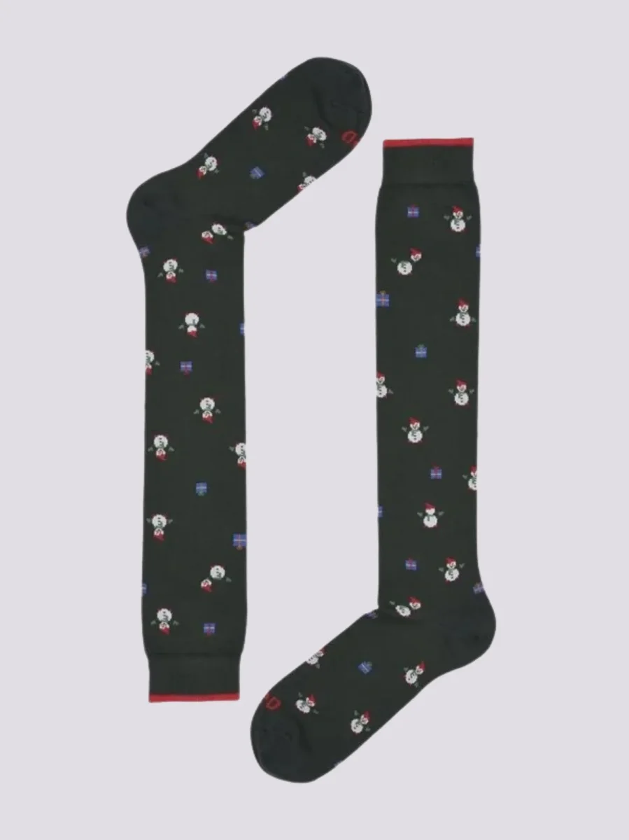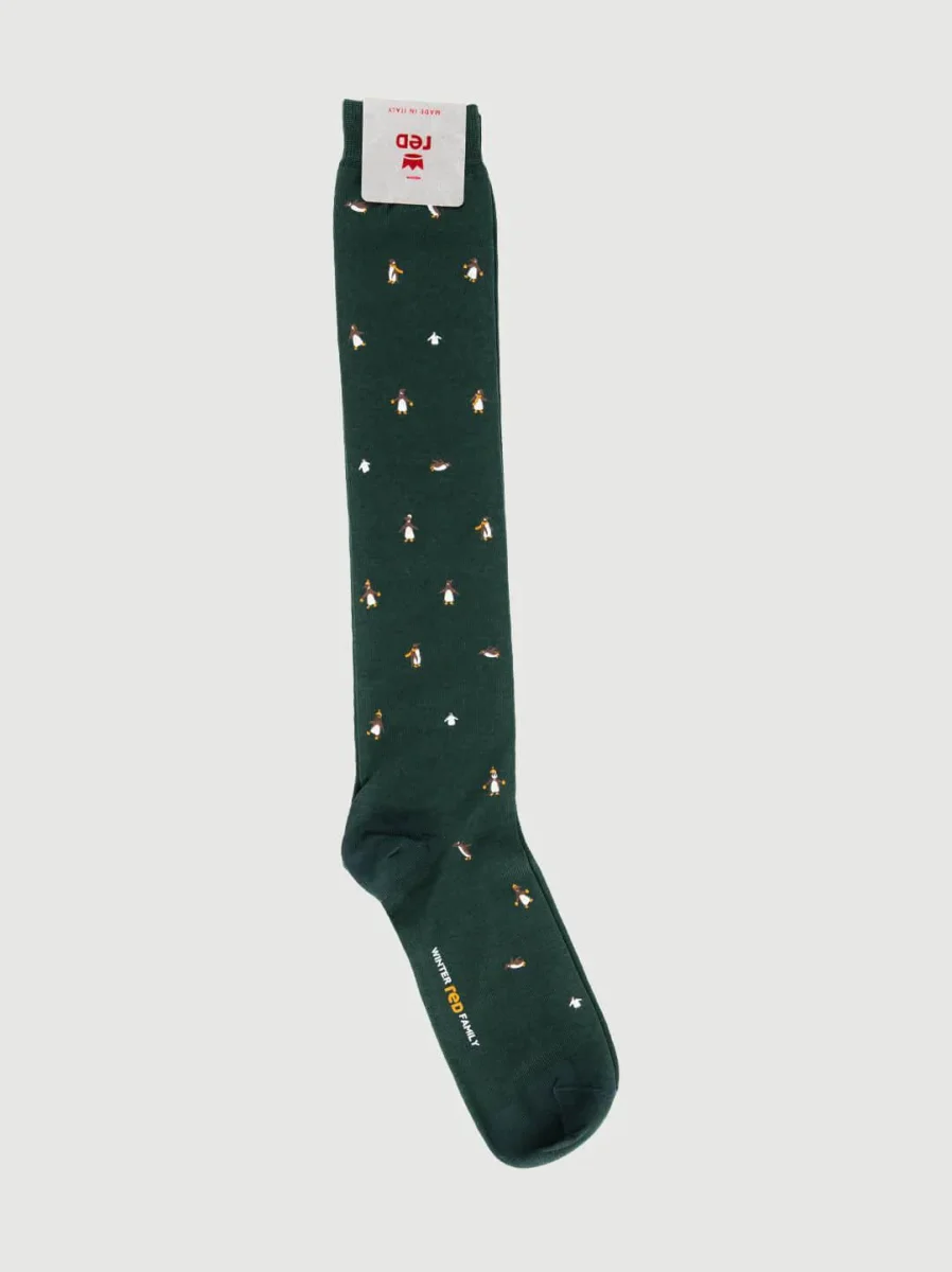 CALZA LUNGA CALDO COTONE VERDE MOTIVO BASSOTTI