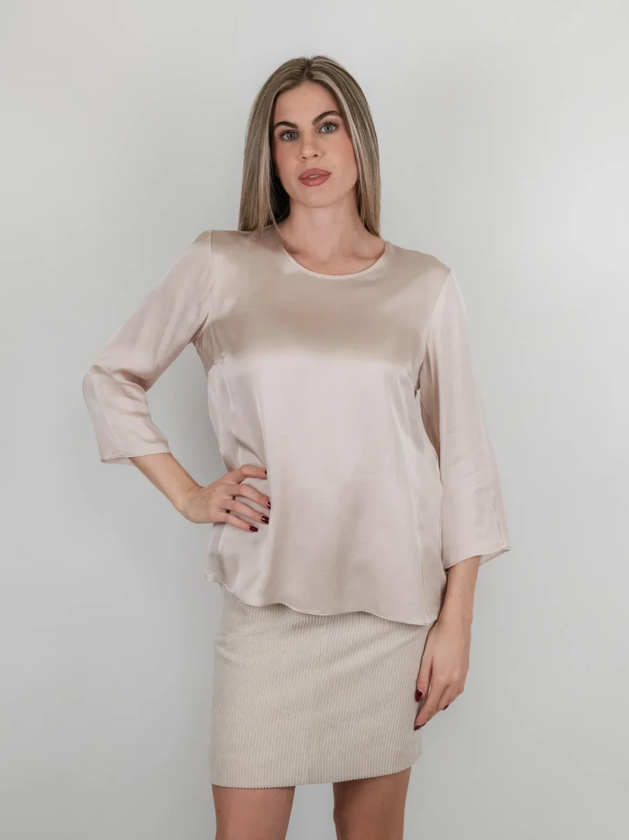BLUSA A MANICA CORTA IN RASO CHAMPAGNE