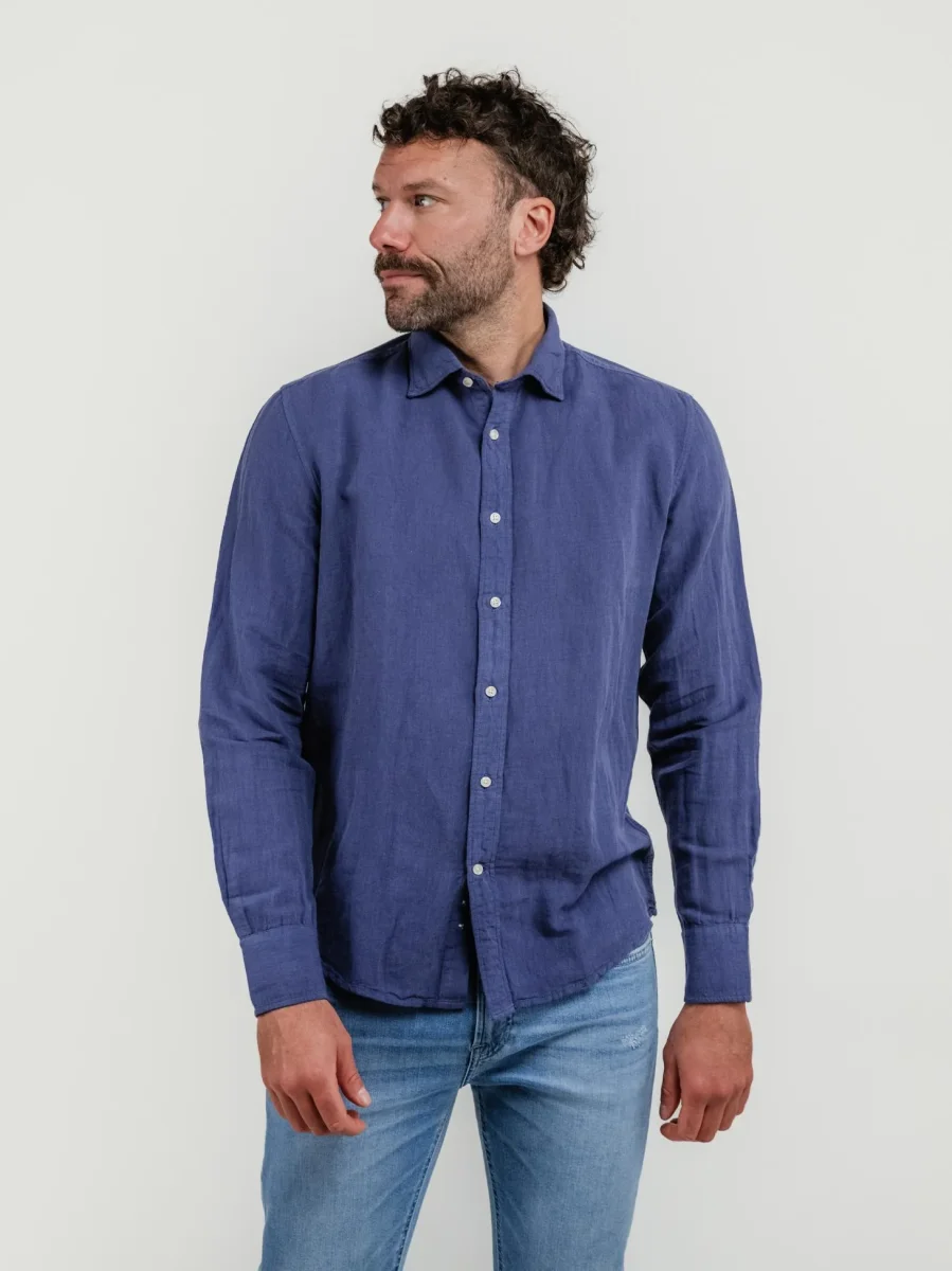 CAMICIA FLYNN IN LINO E COTONE BLU