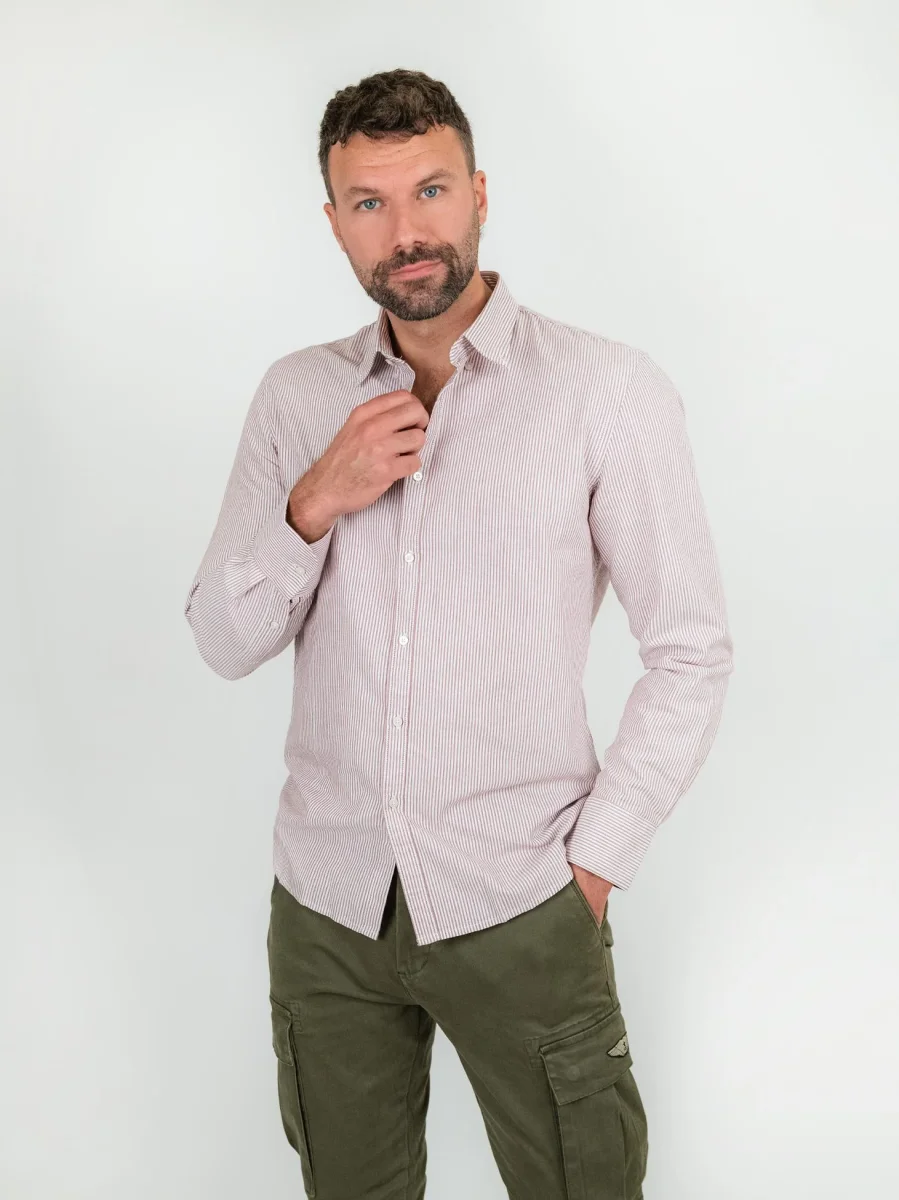 CAMICIA ANDY OXFORD A RIGHE BIANCHE E ROSSE