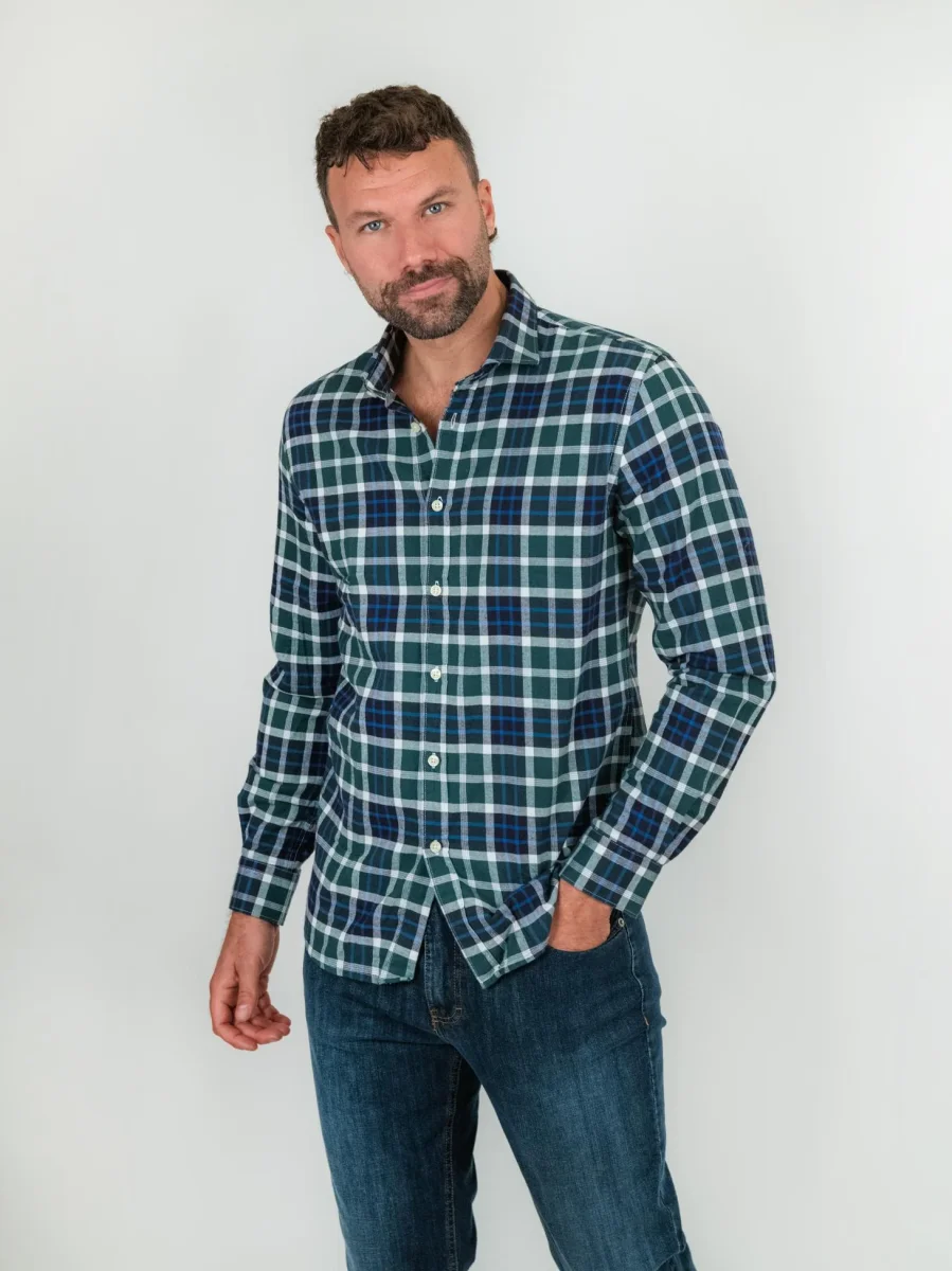 CAMICIA base verde in flanella di cotone a quadri
