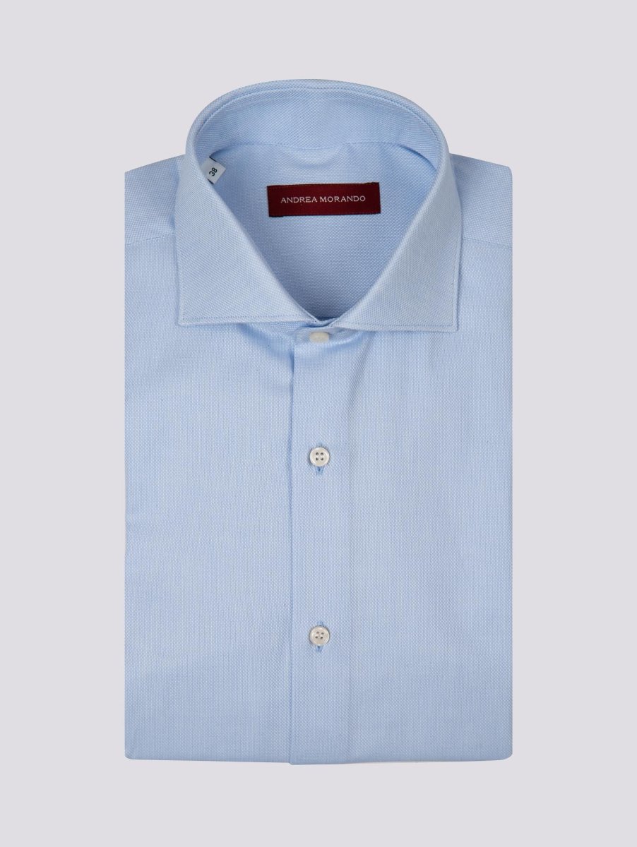 CAMICIA AZZURRA CON MICROFANTASIA BIANCA